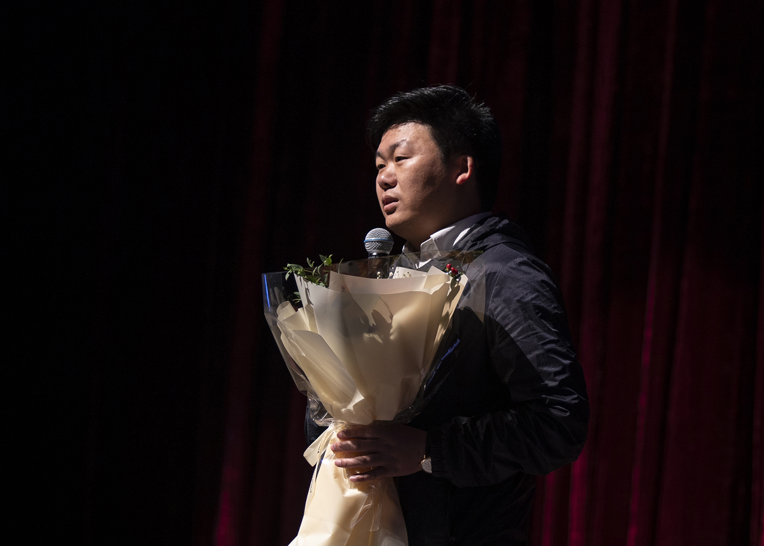 员工浙江瑞林光环境集团董事长陈连飞代表广大员工发言,他深情回顾在校求学的岁月里难忘的点点滴滴,青春无言,师恩难忘,分享了自己的创业经历,并对在校学弟学妹们提出培养高尚品格、成就精彩未来、谱写奋斗青春之歌的期望。
