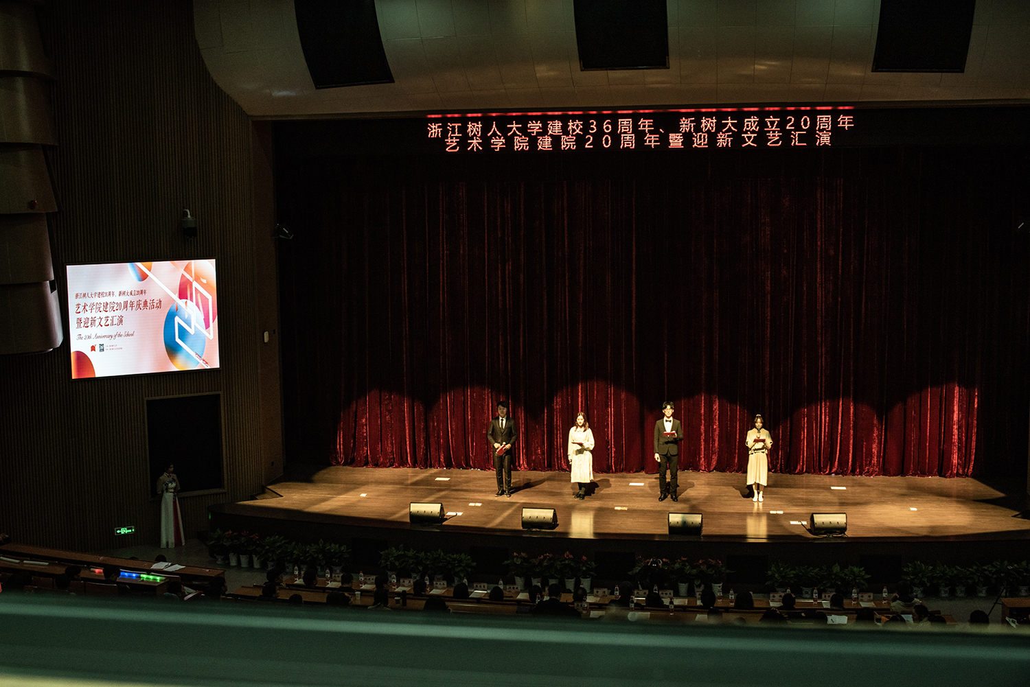 “创新品质,创意风貌;二十年岁月,数千颗心灵;追求艺术,热爱母校!”