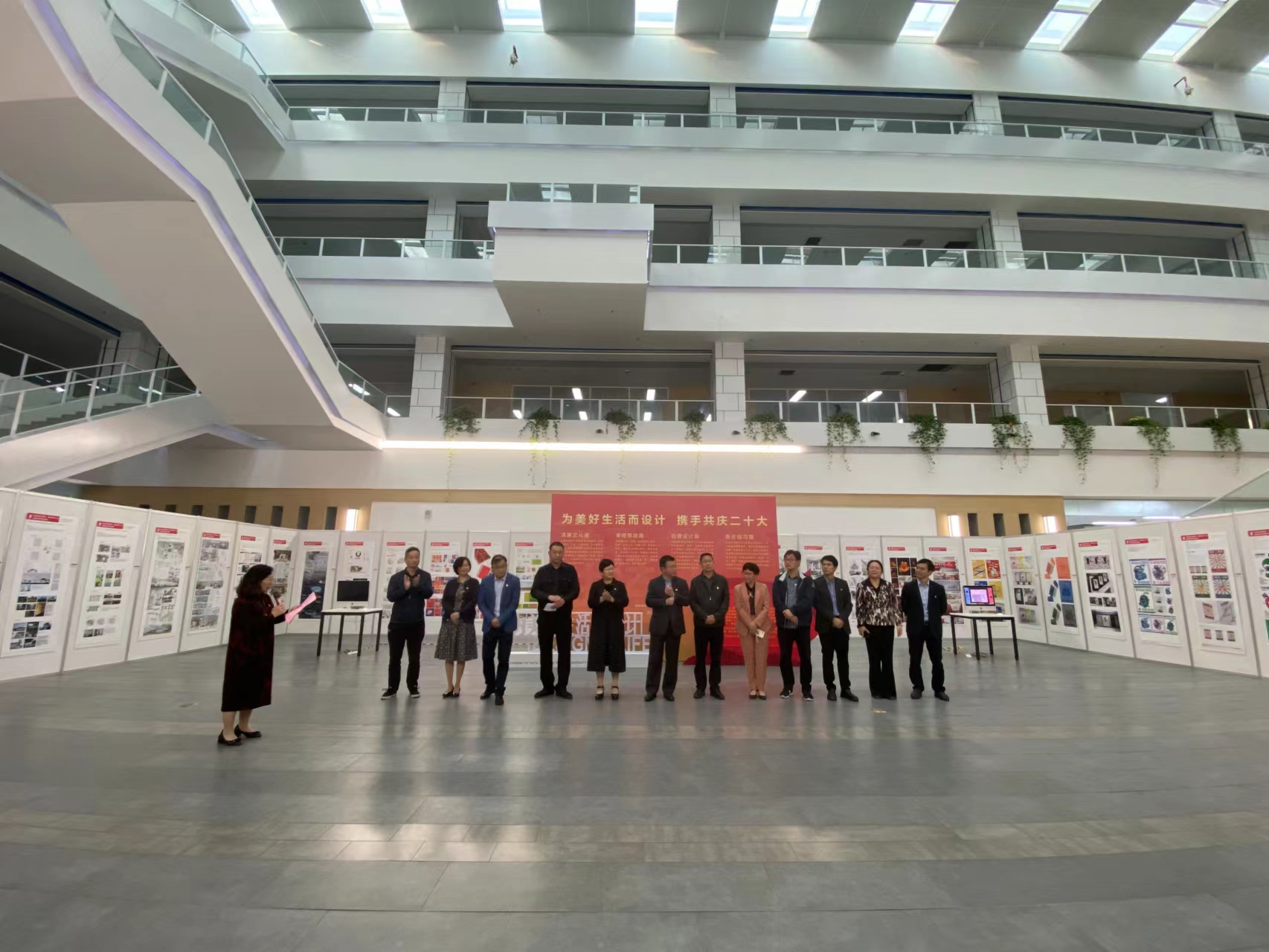 翰墨飘香歌盛世,光影溢彩颂辉煌。在党的二十大即将召开之际,由太阳集团tyc4633承办的“为美好生活而设计·携手共庆二十大”优秀作品展于10月13日下午,在树人公司杨汛桥校区图书馆拉开帷幕。以公司党委书记章清为代表的校领导和校相关处室领导及太阳集团tyc4633部分师生代表出席开幕式。开幕式由公司党委书记郑桂玉主持。