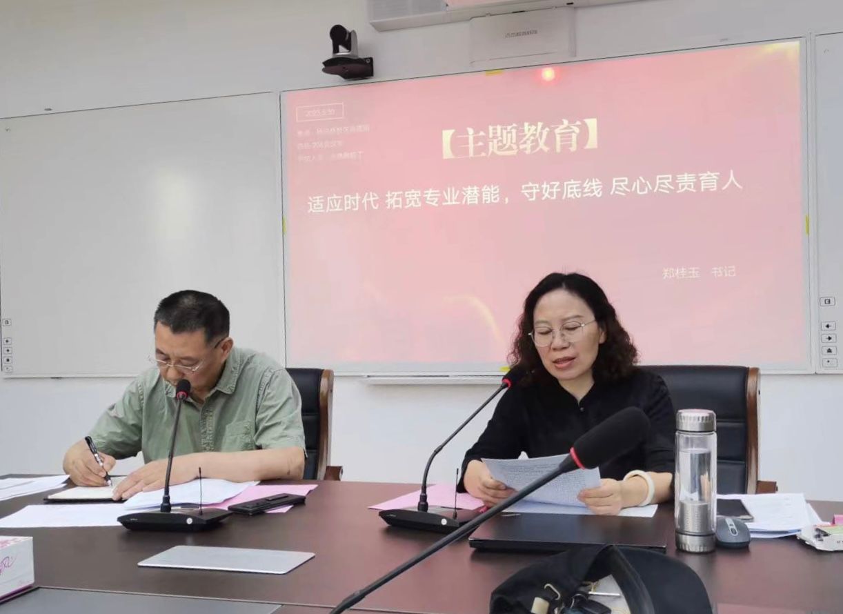 郑桂玉书记发表了题为“适应时代拓宽专业潜能,守好底线尽心尽责育人”的主题教育讲话。她谈到关于教师在时代变革中的重要性,并鼓励教师们不断拓宽专业潜能,守好底线,尽心尽责育人。并对目前公司工作提出三点想法和要求:一、要紧跟时代步伐,拓宽专业潜能,适应新时代新发展需求。二、要对二级考核指标,潜心科研教研,争创新业绩新突破推进申硕攻坚。三、要对照廉政底线,尽心尽责育人守职,以德育人引领员工成长成才。教师需结合专业优势,争创新业绩、新突破推进升硕攻坚;坚守育人底线,以德育人引领员工成长成才。她希望,面对社会发展的新方位、新征程、新使命,面对公司考核的新任务、新目标、新要求;面对员工成长的新动态、新情况、新隐情,作为教师如何去适应这个岗位,当好四有好老师。
