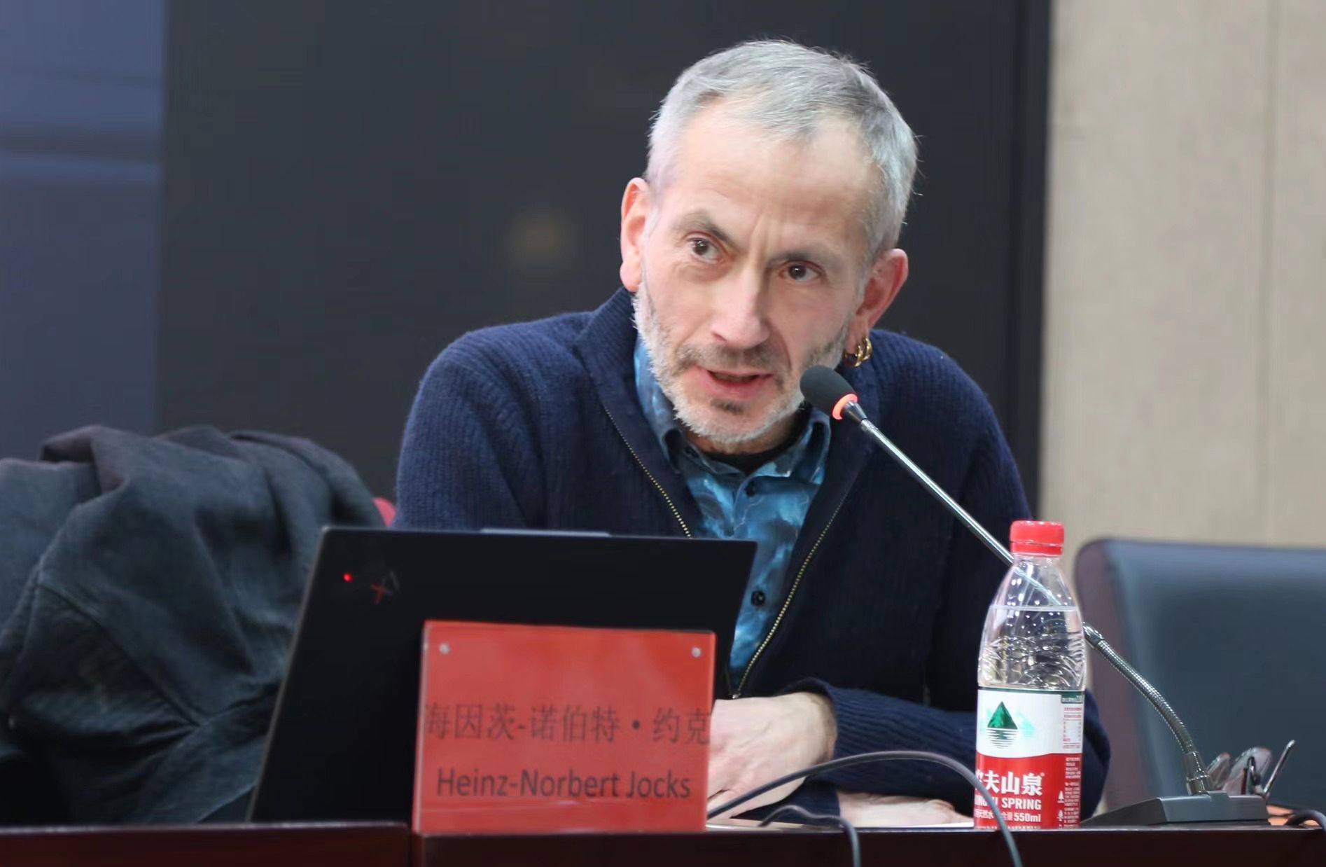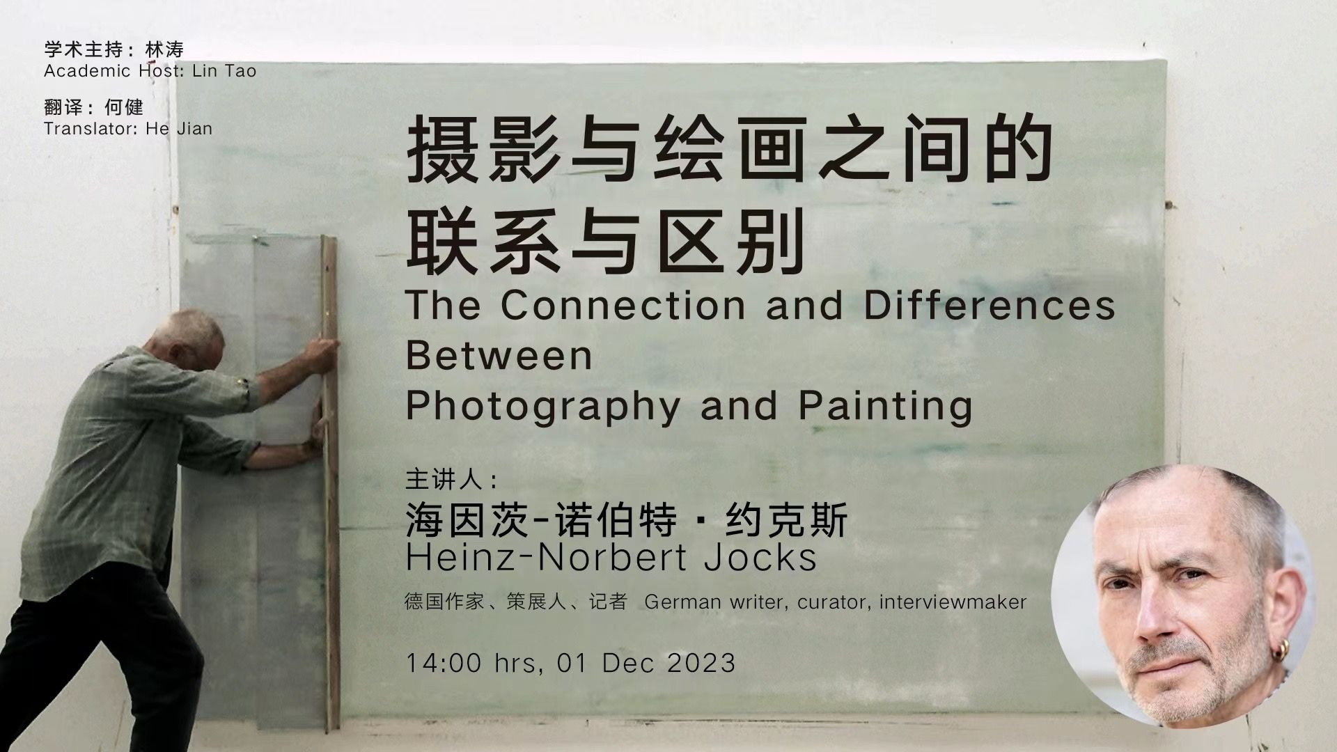 2023年12月1日 下午14:00,太阳集团tyc4633“他山之石”专家名师学术系列讲座第九讲于太阳集团杨汛桥校区学术报告厅104举行。此次讲座的演讲嘉宾是来自德国著名策展人、作家、记者海因茨·诺伯特·约克斯(Heinz-Norbert Jocks),讲座由公司教学副经理林涛博士主持,歌德公司文化项目负责人、艺术家何健老师翻译。