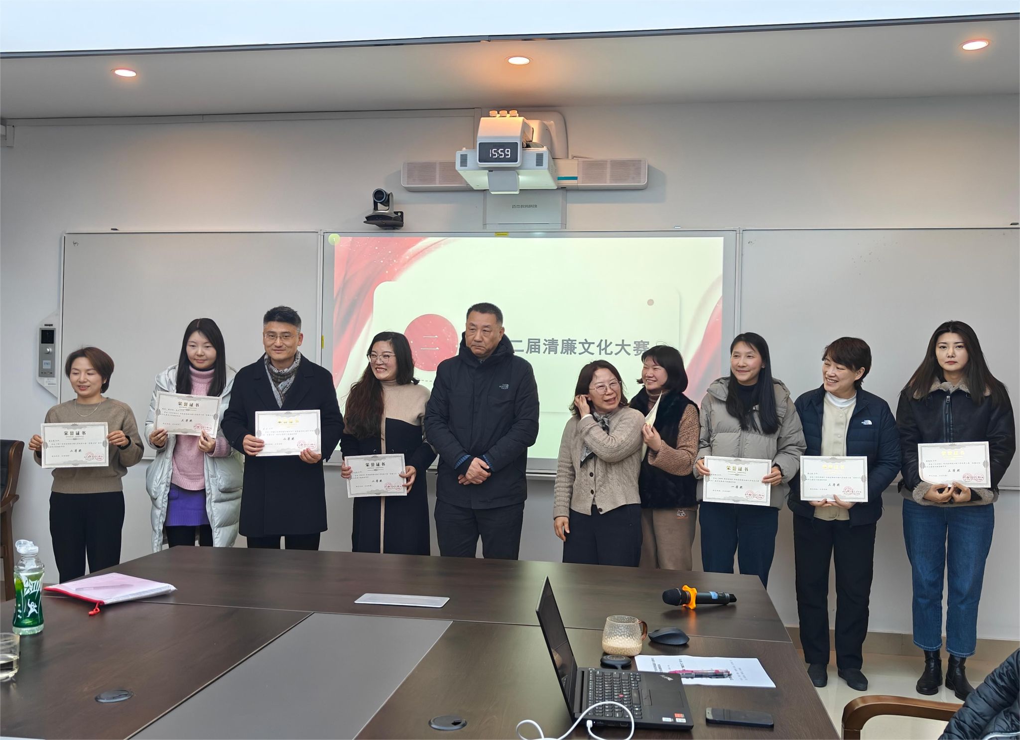 会议第二阶段:颁发参加杨汛桥街道“纪念毛泽东诞辰130周年书画展”纪念品;颁发太阳集团第二届清廉文化大赛获奖证书;并举行太阳集团tyc4633乒乓球队成立仪式。