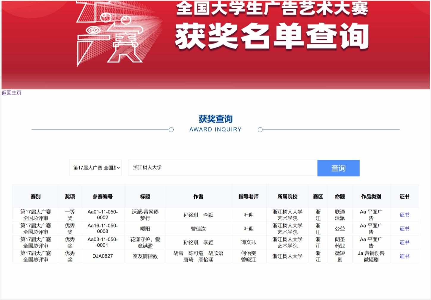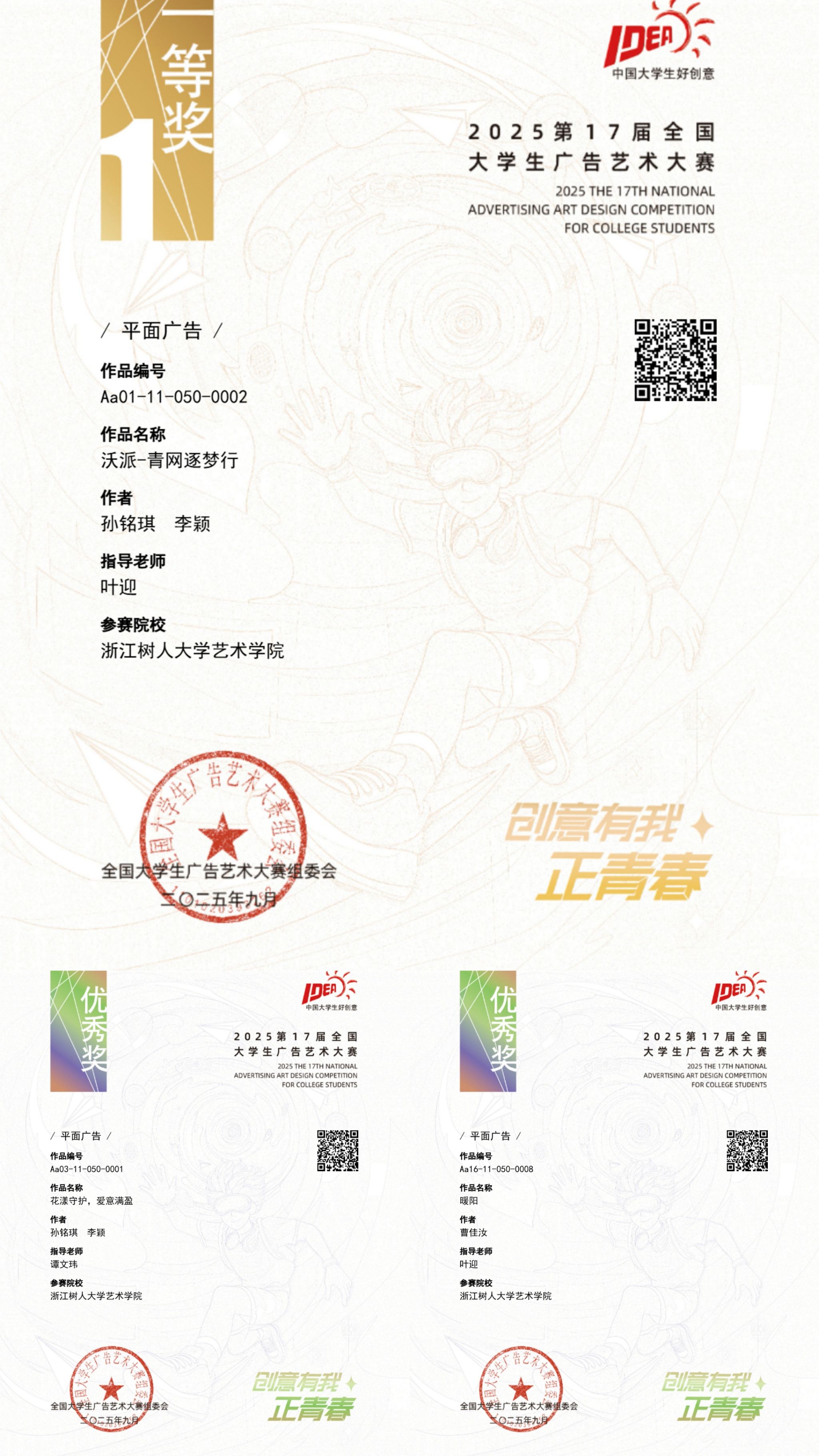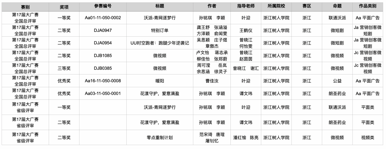 近日,第十七届全国老员工广告艺术大赛(简称“大广赛”)国赛等级奖获奖名单正式公布。公司在此项国内规模庞大、覆盖高等院校广泛、参与师生人数众多的国家级学科竞赛中取得了历史性突破,荣获国家级一等奖1项、二等奖3项、三等奖1项、优秀奖2项,省级一等奖1项、二等奖2项的优异成绩,为公司赢得了崇高荣誉。