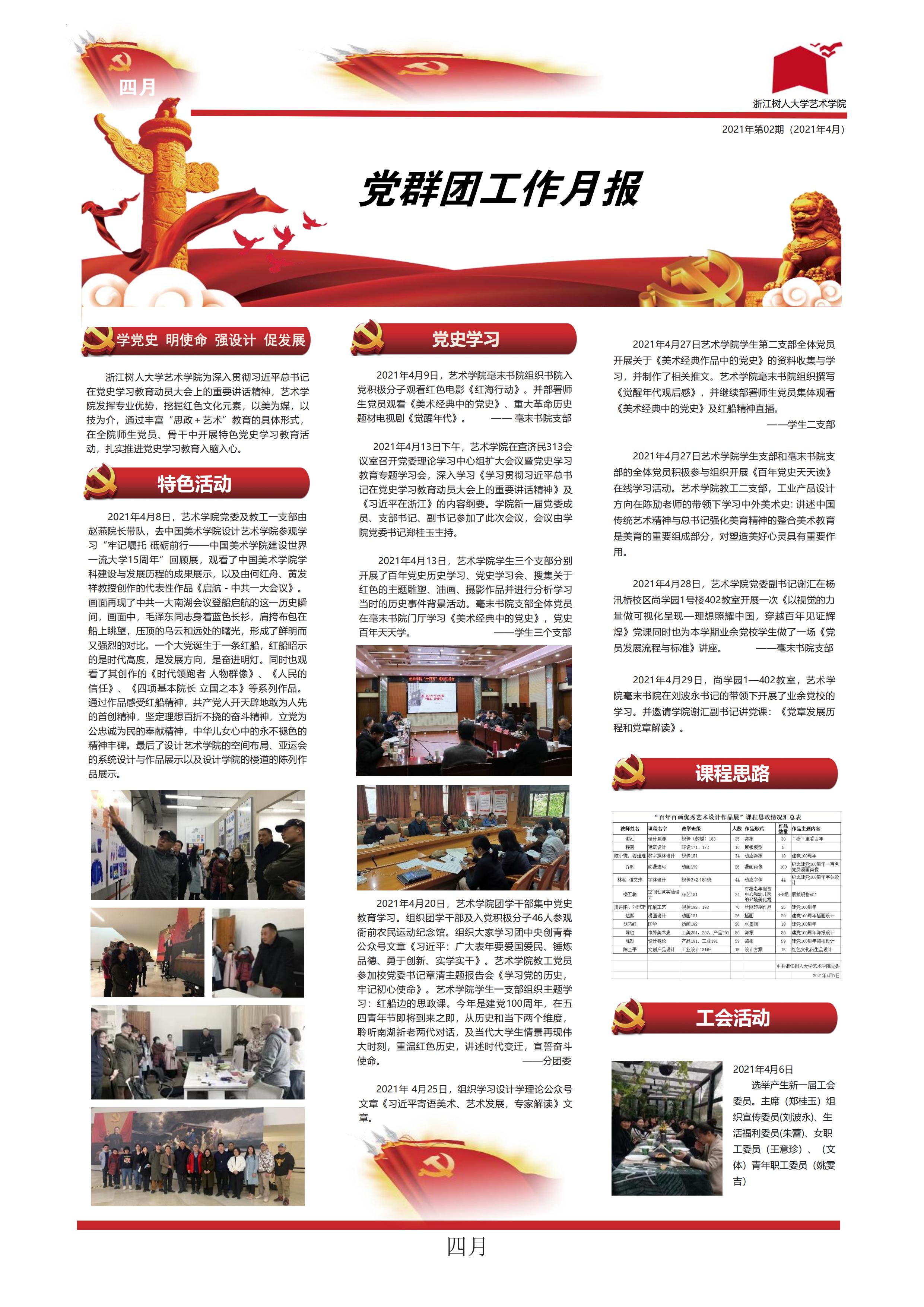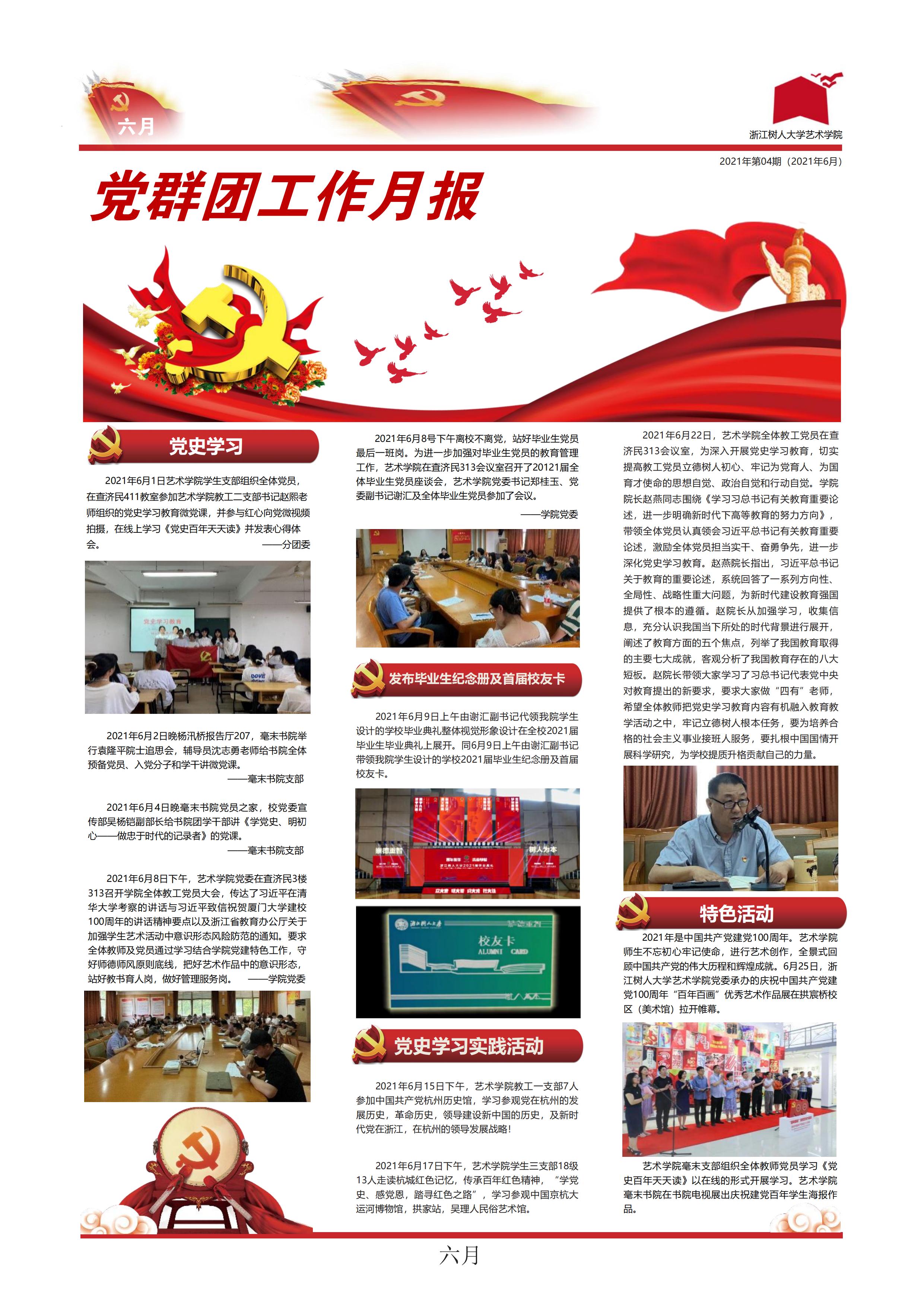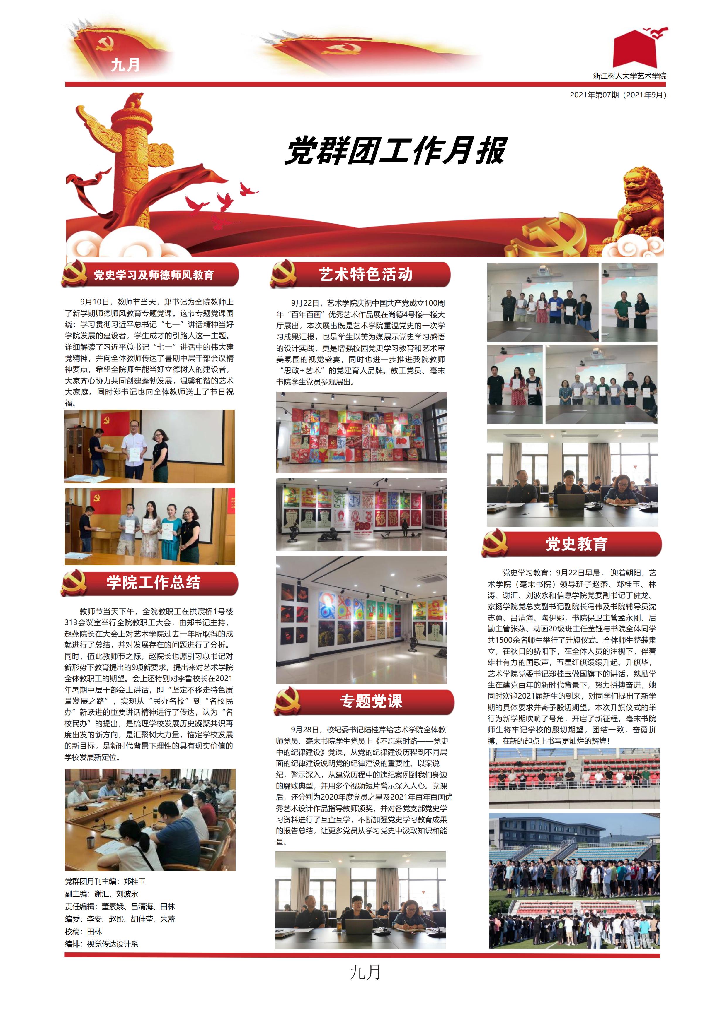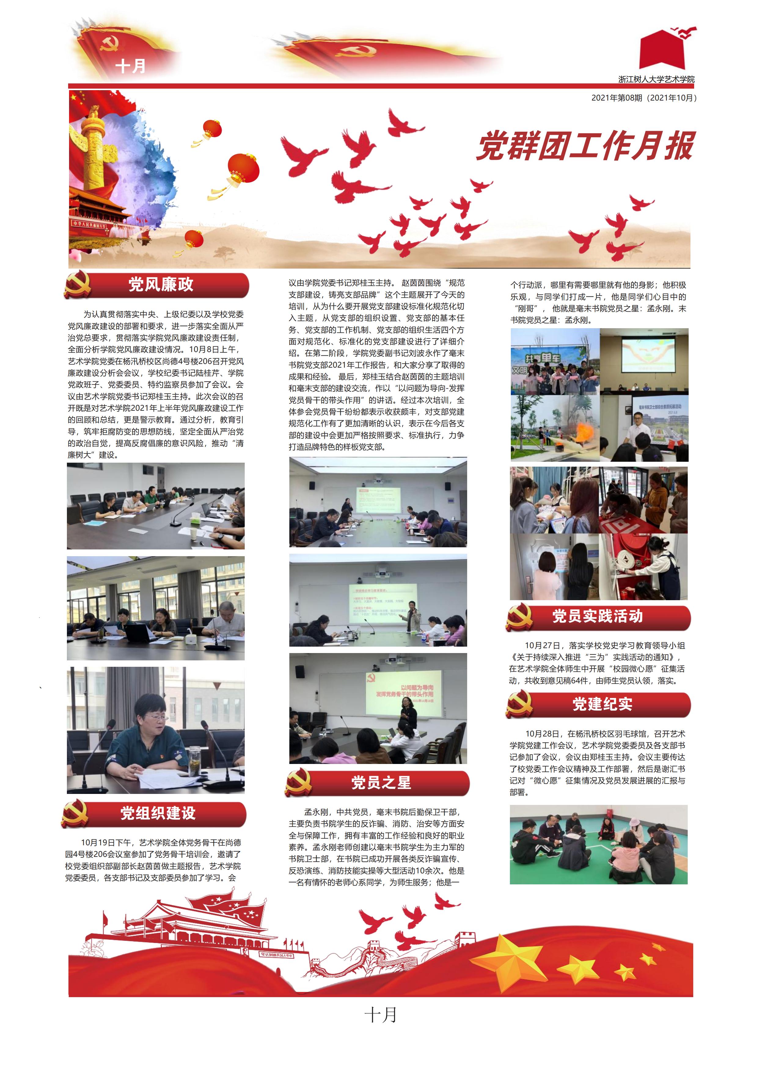 为了深入贯彻落实学党史、校史、院史要求,更好地记录和传播太阳集团tyc4633各党群团组织“跟党走、感党恩、办实事”的特色实践活动,在公司党委和广大师生的支持下,《浙江树人大学公司党群团工作月报》以一种独具特色的形式问世,它是电子纪实的方式记录太阳集团tyc4633每月党建、团学、工会等各类学习教育、活动组织及特色典型事迹。自今年3月份创刊以来,已经连续刊发10期,每期月报都划分为不同的版块,分别刊登不同类型的内容,里面内容丰富、图文并茂、一目了然,形成太阳集团tyc4633特有的党群团活动宣传和意识形态传播阵地,在公司师生中产生了良好的效应。