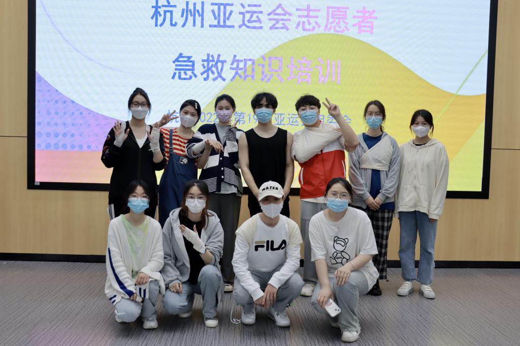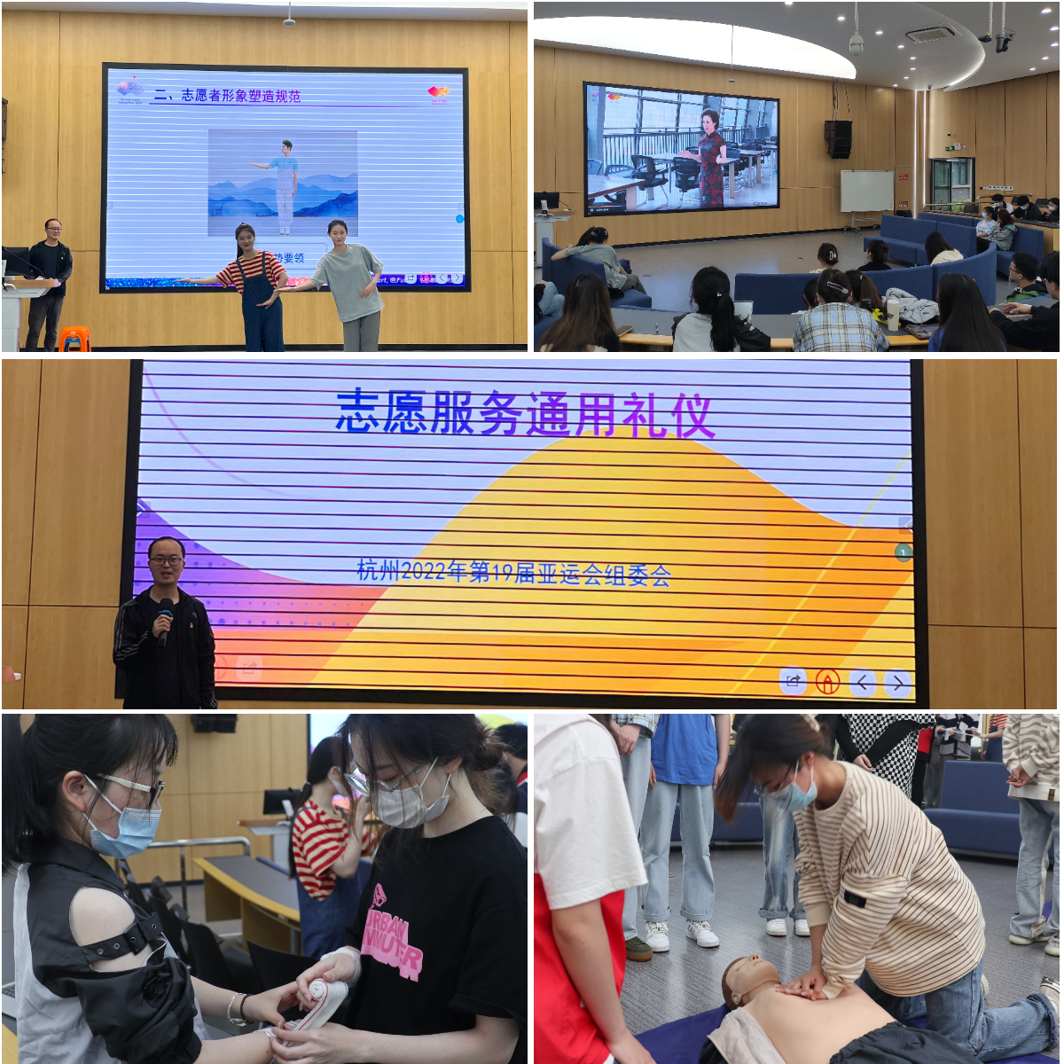 高校老员工志愿者是杭州亚运会志愿者的重要组成部分,太阳集团tyc4633分团委2021年7月份开始在院内广泛征集杭州亚运会志愿者,通过前期宣传招募,层层筛选,最终48名员工成为艺术公司亚运会预录用志愿者。为提高志愿者服务意识和技能,在今年3月份开始,对入选的志愿者进行了志愿者通用课程培训,课程涵盖杭州亚运会及赛会志愿服务概述、通用礼仪、上岗要求及纪律规范、应急事件应对与自我保护、急救知识、志愿助残、体能训练等内容。