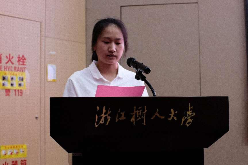 第三项议程是由来自工艺美术 212 班的童颖欣作为优秀学员代表发言。