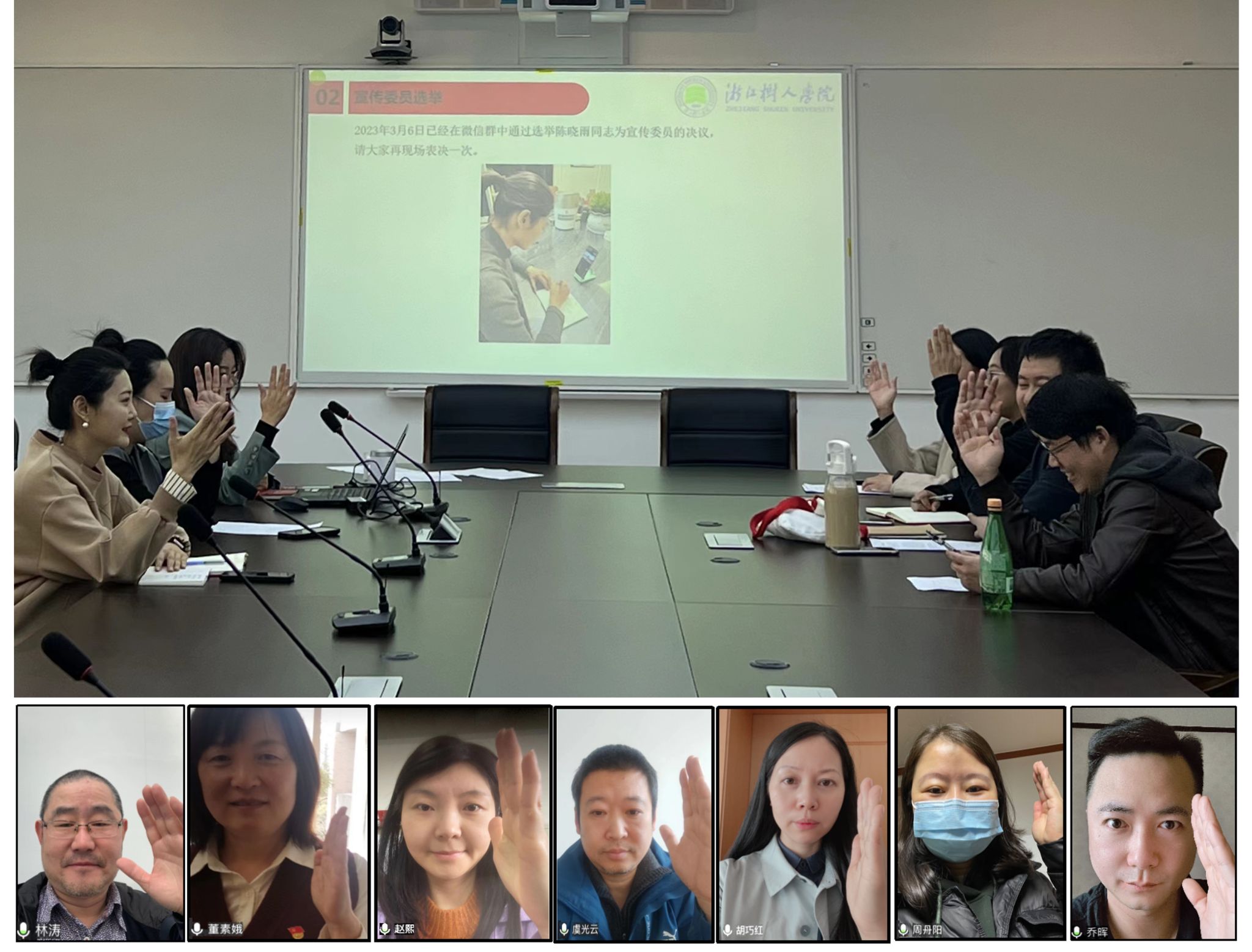 因工作需要,支部对宣传委员进行了改选。通过现场表决和视频表决两种方式进行,现场的同志、参加视频会议的同志都一致举手表决,全票通过陈晓雨同志担任宣传委员的决议。