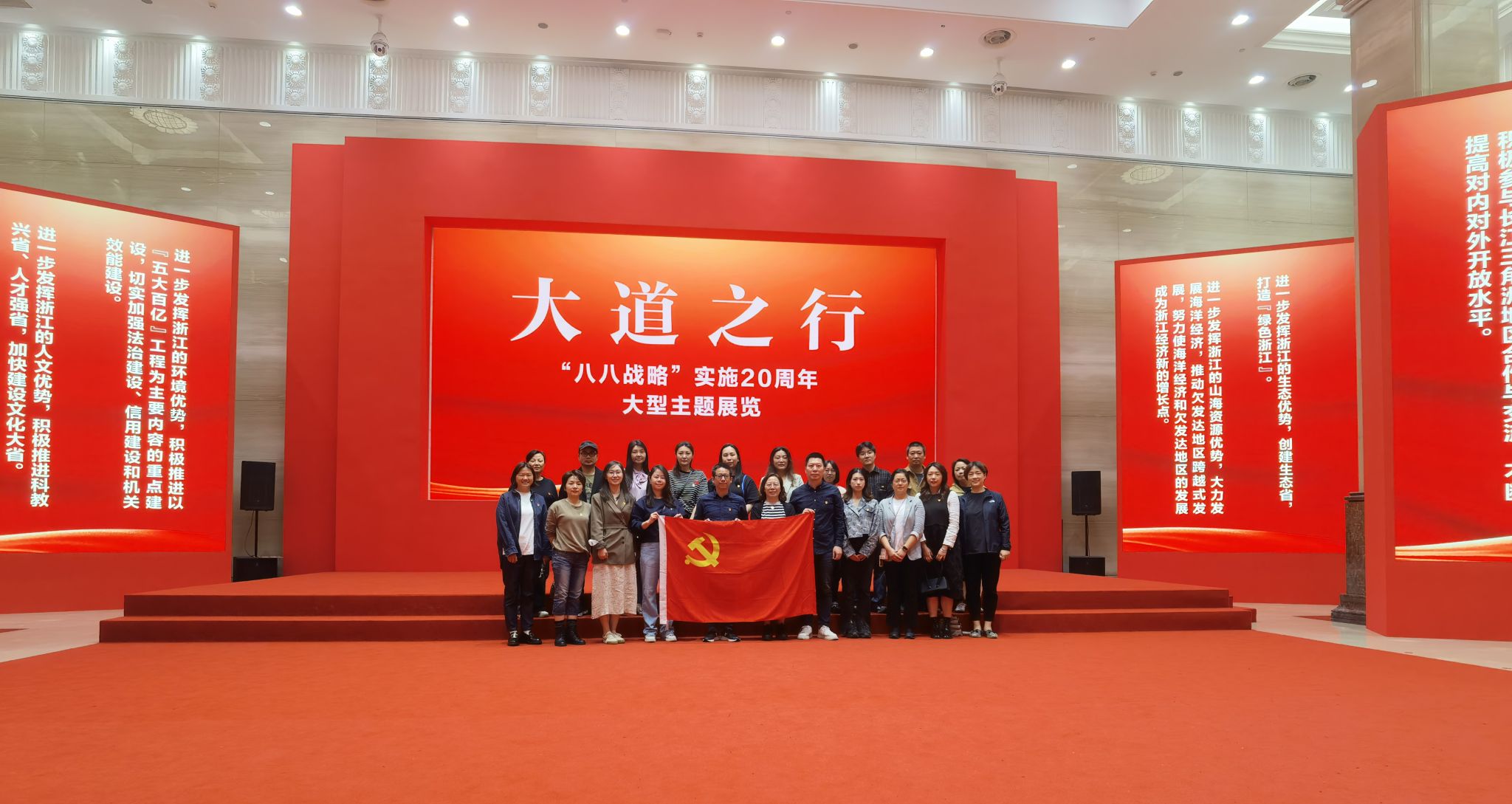 今年是“八八战略”实施20周年。为系统地学习“八八战略”和习近平总书记治国理政新理念新思想新战略,10月10日下午,公司党委书记郑桂玉带队,全体教师党员到浙江展览馆观看 “大道之行——‘八八战略’实施20周年大型主题展览”。