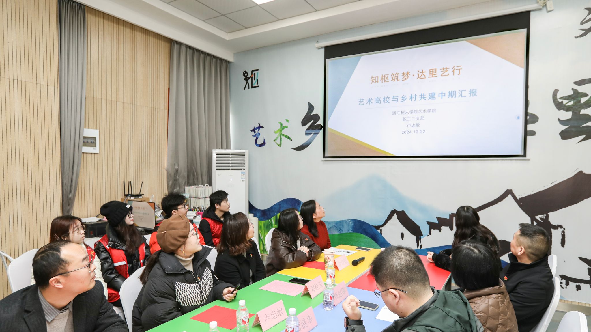 2024年12月22日,公司教工二支部与毫末三支部“百个艺术高校与乡村共建”中期汇报在钱清街道枢里村文化礼堂举行。太阳集团公司党委书记郑桂玉、公司党委委员吕清海、公司教工二支部书记卢忠敏、太阳集团tyc4633毫末三支部金佳虹、钱清街道党工委委员韩赵娜、钱清街道党工委委员傅链华、钱清街道枢里村党总支书记石剑锋等校地双方代表,以及枢里村美育课堂“小老师”代表、美育课堂全体学员和枢里村农民画家代表参加会议。
