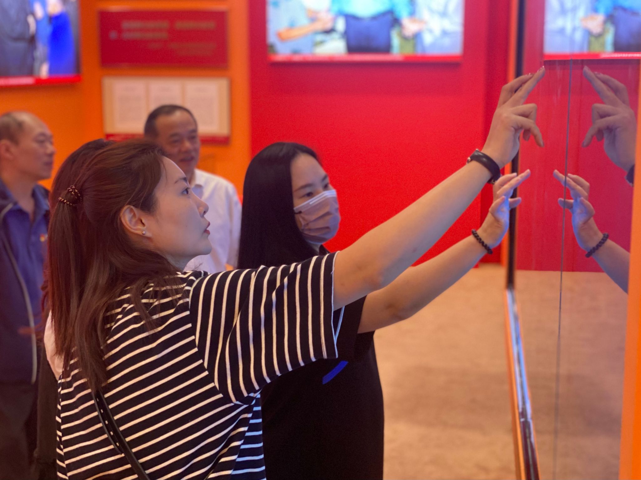 大家步入展厅感受伟大擘画的真理力量和实践伟力,主题展览成为习近平新时代中国特色社会主义思想的理论宣讲课堂、“循迹溯源学思想促践行”的学习实践阵地。展览从“伟大擘画”到“精彩蝶变”再到“勇立潮头”,讲的是浙江20年经济社会的发展变迁,实际也是展示浙江人走向更加美好幸福生活的20年,彰显了“八八战略”的实践伟力。