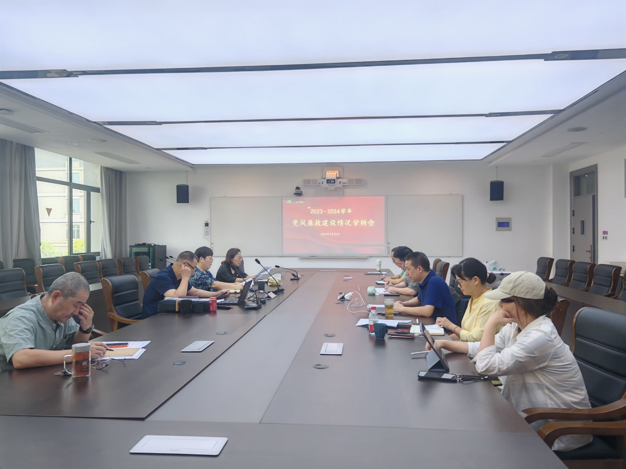 9月29日下午,公司党委在尚德4-206会议室召开了2023—2024学年党风廉政建设情况分析会。会议由公司党委书记郑桂玉主持,公司党政班子成员、党委委员及特约监察员叶迎参加会议,校纪委书记陆桂芹出席会议并讲话。