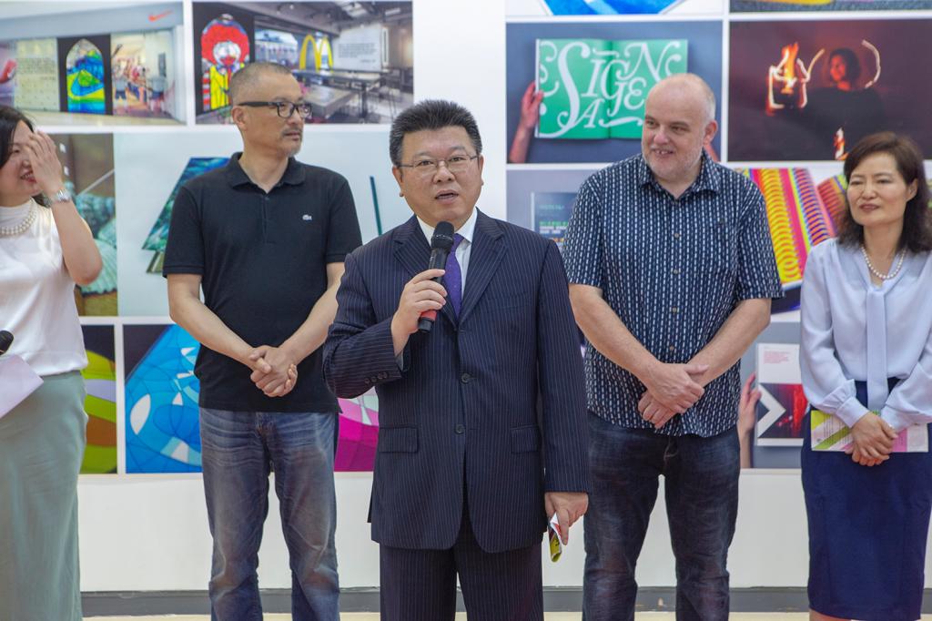 公司党委书记章清教授致辞中,他首先祝贺此次艺术联合作品展顺利开展,感谢为此次作品展付出辛勤劳动的双方老师和员工。他指出公司和英国林肯大学有非常多的相似之处,比如两个公司都坐落于自己国家的古城当中、两校的办学历史和办学规模也很相似,更重要的是我们两校都有可爱的员工,所设计的作品都展现出一种共同的、超前的艺术理念。虽然文化是有差异的,但是艺术是没有国界的。希望通过这样一次艺术的交流,让我们的思想更为相通,让我们的友谊更加长存,让我们的收获更为广大。最后,再一次欢迎并感谢大家,希望联展能给来访的英国师生在杭州留下深刻的印象。