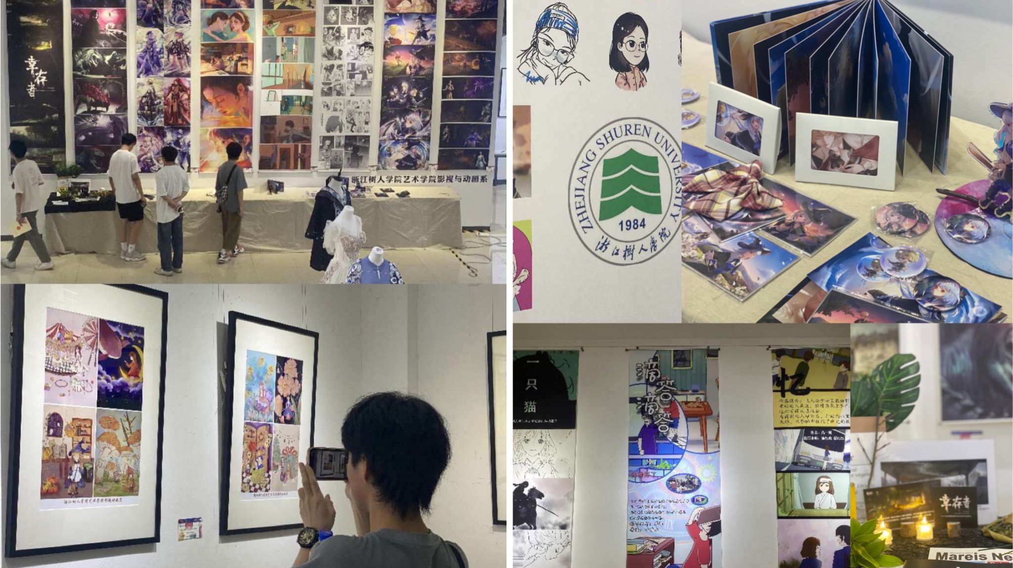 展览现场(展出有动画、游戏美术、插画与漫画、绘本、动漫衍生产品等)