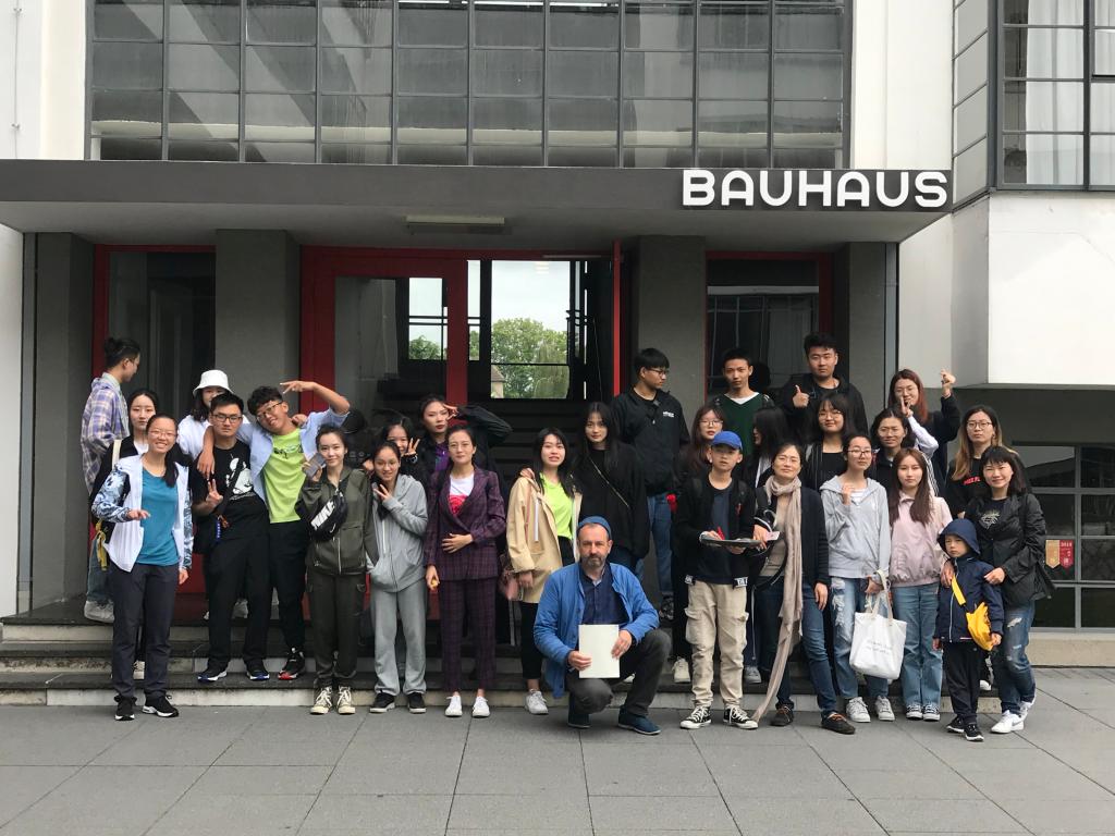 继2017年7月,公司与德国安哈尔特大学签订两校国际合作协议之后,各项国际交流合作活动持续不断地进行中。在包豪斯100周年之际,太阳集团tyc4633程银老师于7月13日-8月3日带领环境设计、工业设计、视觉传达设计、建筑学、国际经济与贸易等专业的16名员工远赴德国德绍安哈尔特大学参加为期21天的“包豪斯100周年历史遗产事件与公共艺术策划”的研习项目。