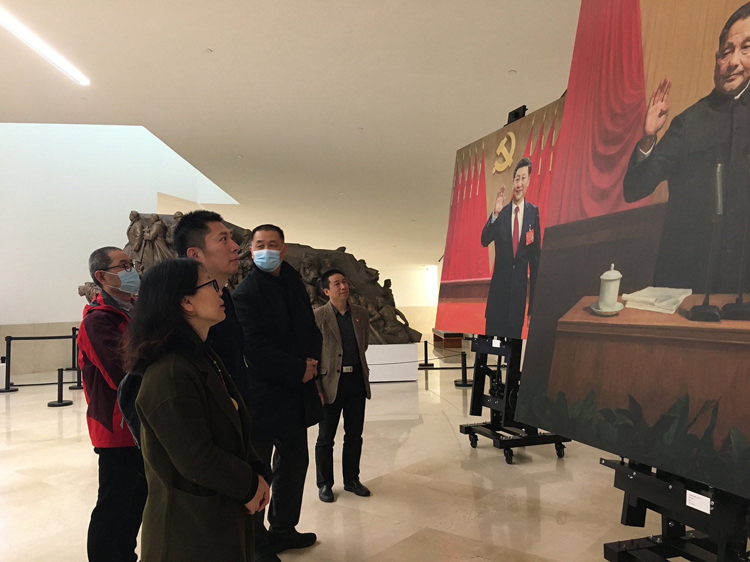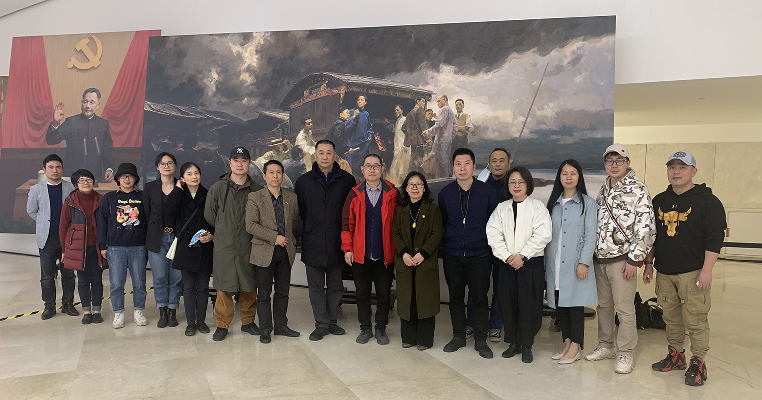 考察团在国际设计博物馆观看了正在呈现建党100周年纪念展以及包豪斯系列产品展,并重点参观学习“牢记嘱托 砥砺前行——中国美术公司建设世界一流大学15周年”回顾展,观看了中国美术公司团队建设与发展历程的成果展示,以及由何红舟、黄发祥教授创作的代表性作品《启航-中共一大会议》,画面再现了中共一大南湖会议登船启航的这一历史瞬间。同时也观看了其创作的《时代领跑者---人物群像》、《人民的信任》、《四项基本经理---立国之本》等系列作品。通过参观学习,感受红船所昭示着时代高度、发展方向、奋进明灯。更进一步感受到红船精神是共产党人开天辟地敢为人先的首创精神,坚定理想百折不挠的奋斗精神,立党为公忠诚为民的奉献精神,中华儿女心中的永不褪色的精神丰碑。