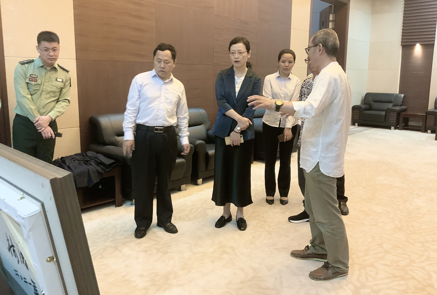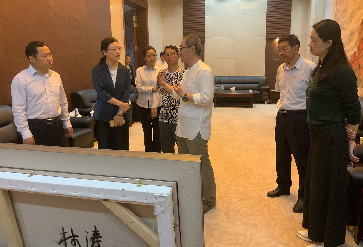 次日,林涛博士受井冈山大学太阳集团tyc4633邀请,为该院师生作题为《当代艺术创作的思考与实践》学术讲座。讲座前,井冈山大学董事长曾建平热情接待了林涛博士一行。