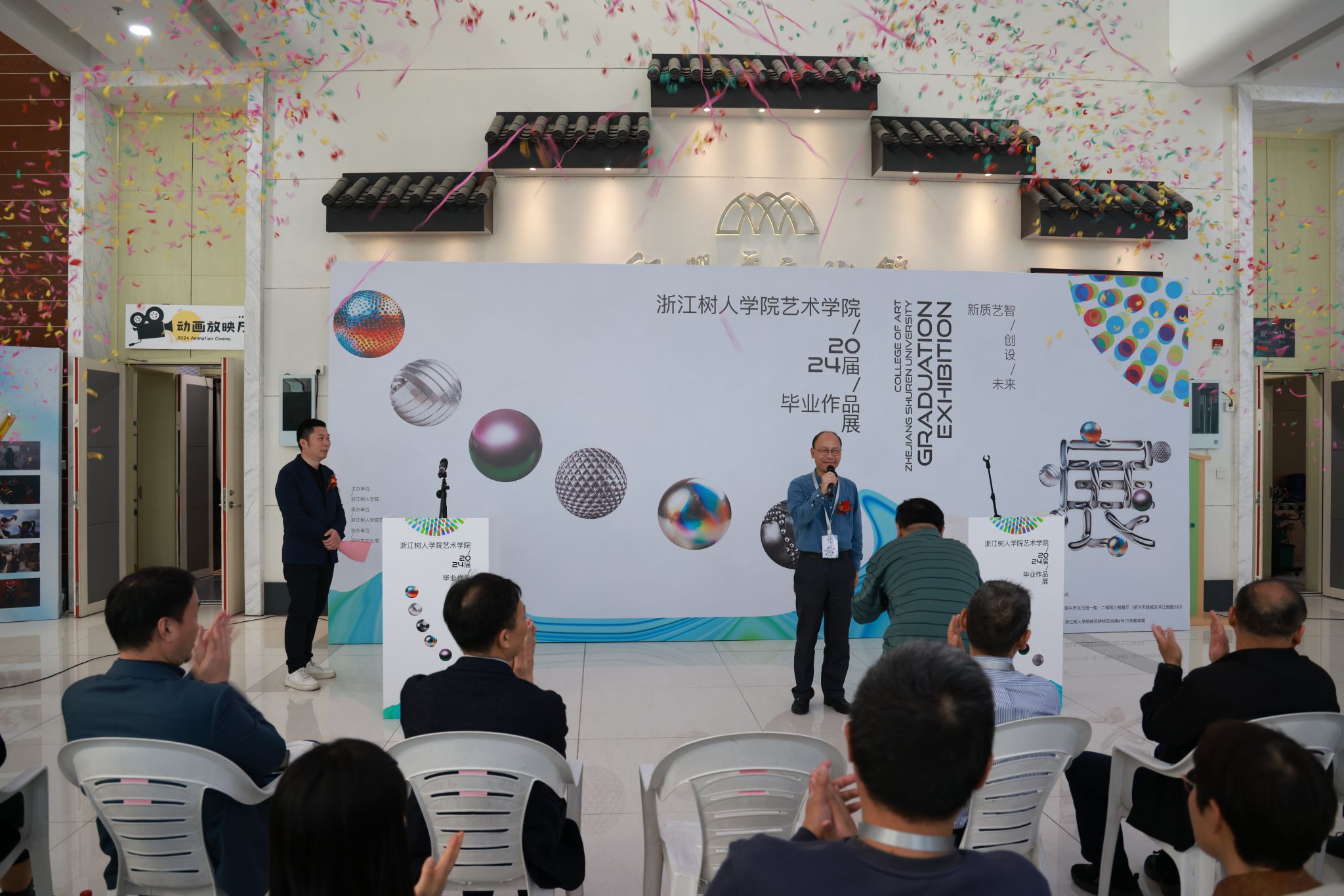 在风景如画的镜水湖畔,阳光和煦,春风拂面。4月18日下午,备受瞩目的2024届毕业设计作品展在绍兴文化馆隆重开幕。