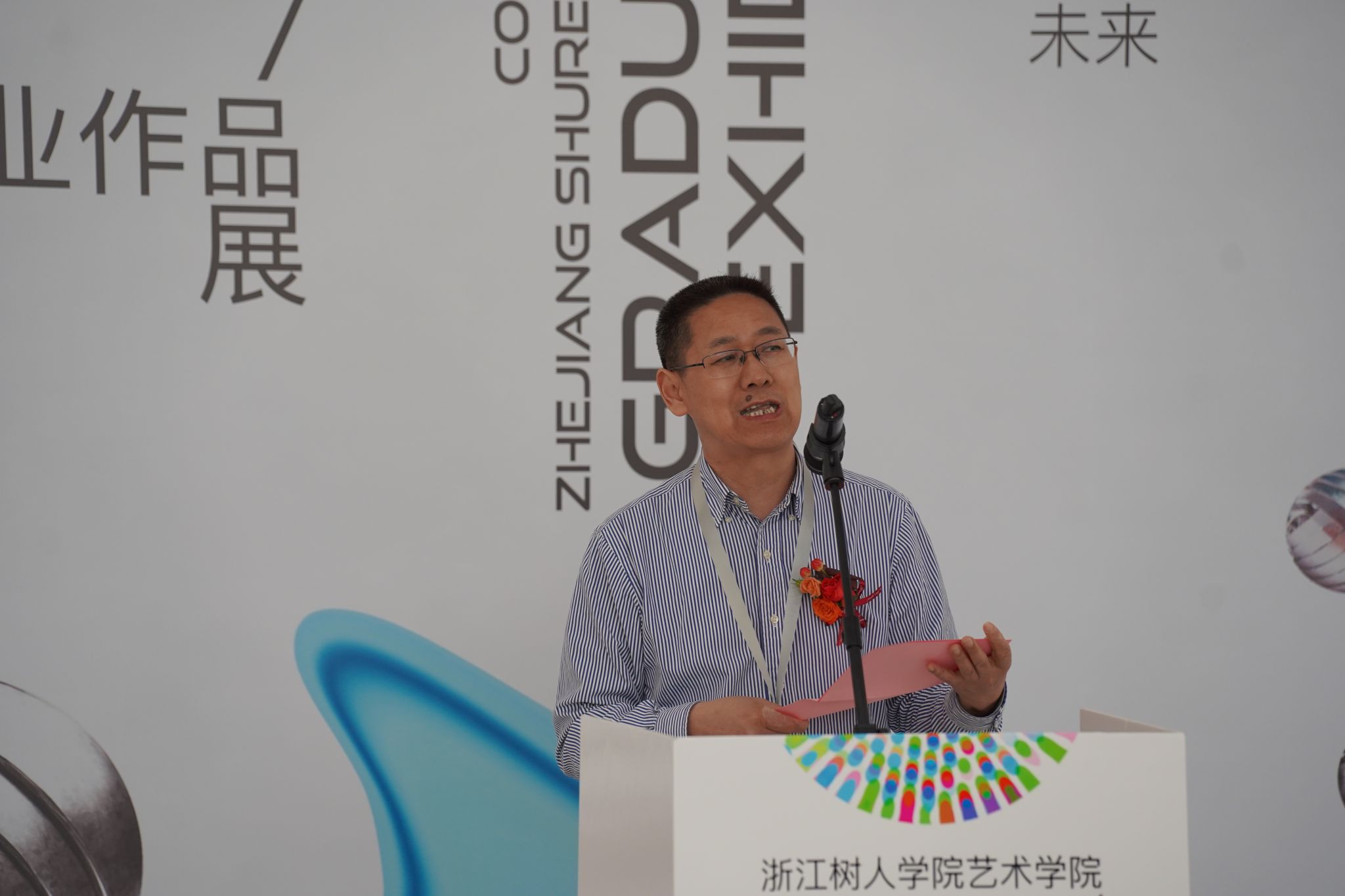 陈新民副董事长代表公司向本次展览的顺利开幕表示热烈的祝贺,并对绍兴文化馆的大力支持表示衷心的感谢。他强调,这是毕业展首次在文化名城绍兴举办,是公司积极融入地方发展的重要举措。在建校40周年之际,他表达了对公司未来发展的坚定信心,并鼓励师生们继续发扬创新精神,迎接挑战,共同创造更加美好的未来。