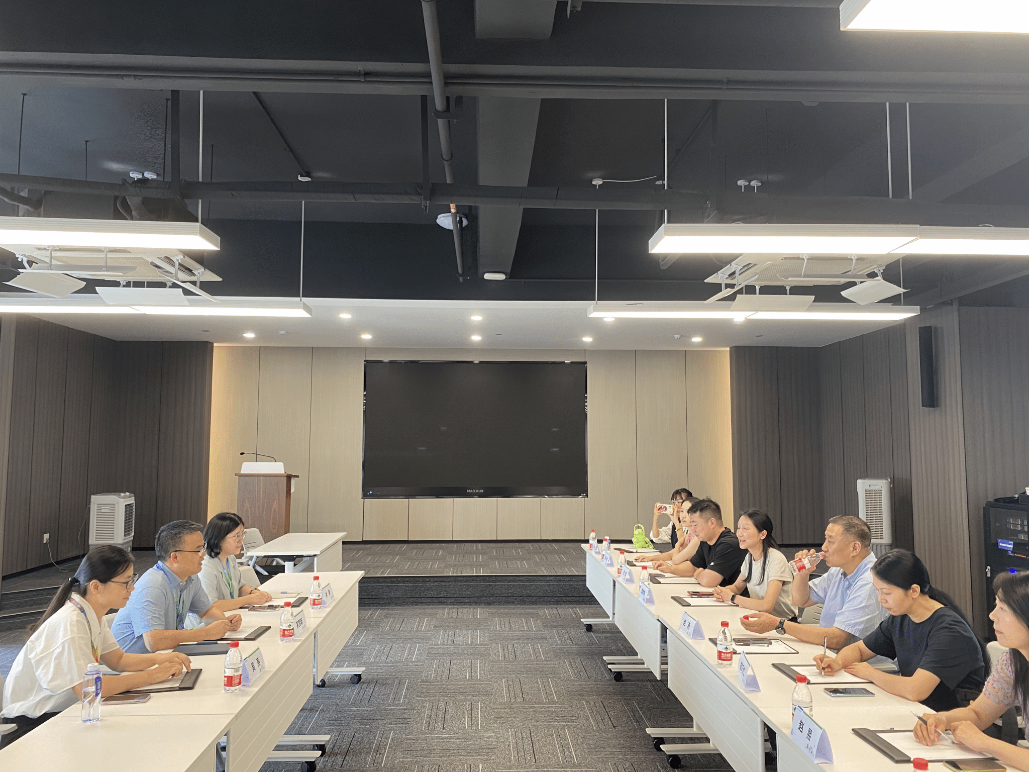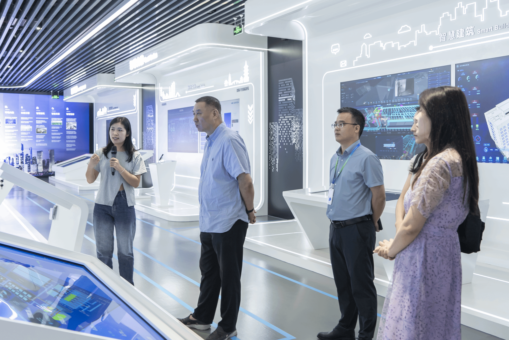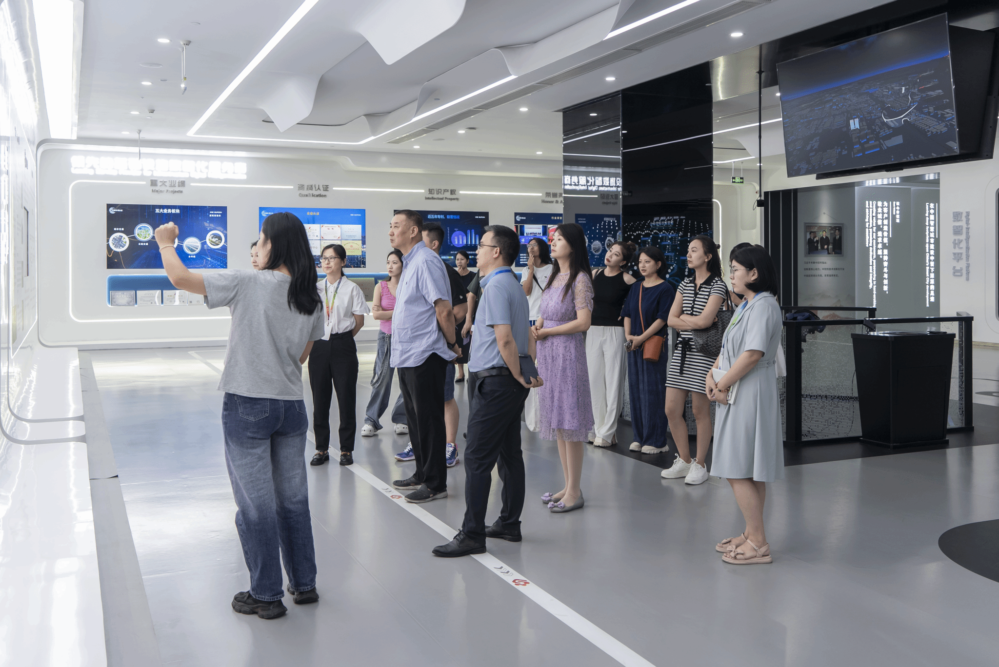 中控信息产业股份有限公司副总工兼研发中心总经理姜雪明、人力资源部总监林静、数字孪生事业部总经理奚燕三位负责人带领老师们参观中控信息体验中心,并介绍了中控信息产业股份有限公司的发展历程、目前发展现状、业务方向以及人才需求。