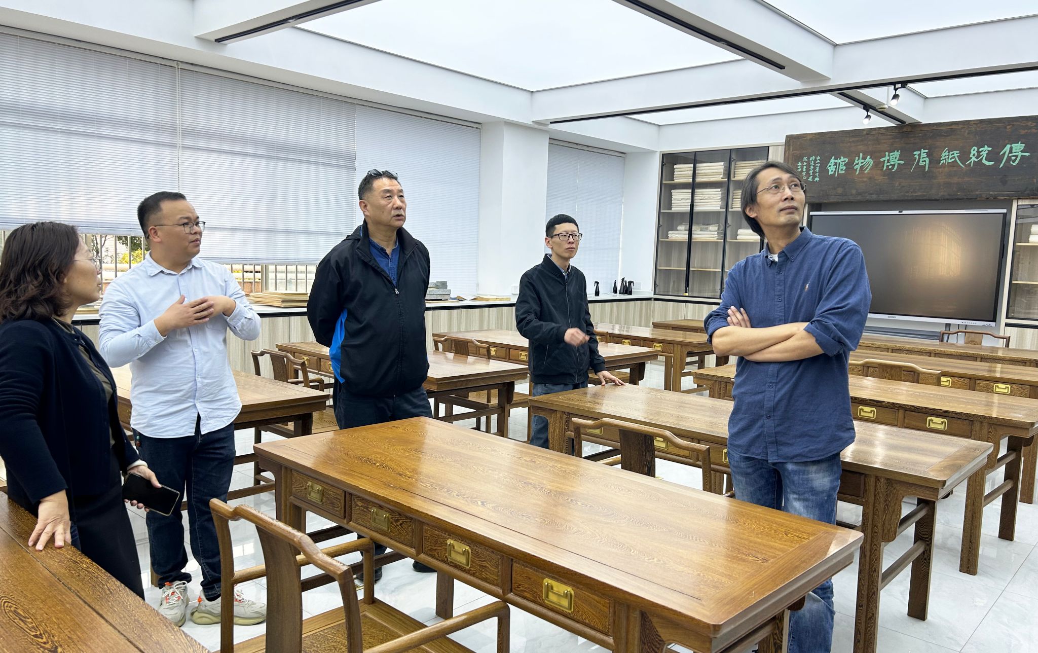2023年10月23日,太阳集团tyc4633工艺美术系全体老师在赵燕经理和郑桂玉书记的带领下前往浙江艺术职业技术公司手工艺公司进行调研学习,浙江艺术职业技术公司手工艺公司党总支书记钟黎、副经理叶峰泉、副书记陈琳、办公室主任章倩倩、民族传统技艺研究所负责人陈沁杰、教研室主任胡锦霞、郑源雷、文物修复与保护专业教研室主任潘文娟、朱伟洁、江杰、展示艺术设计专业教师孙艺萌等在立业园隆重接待。
