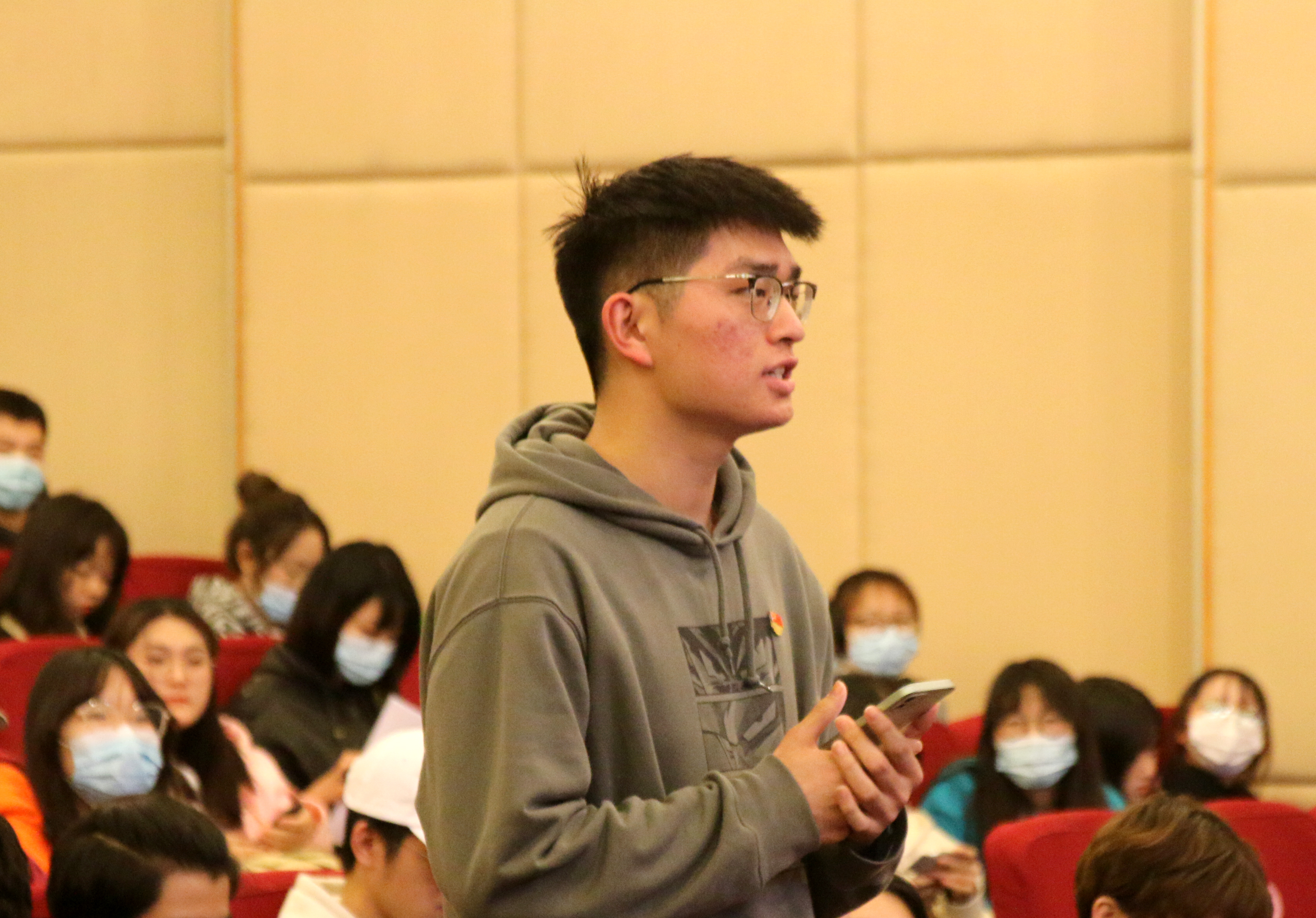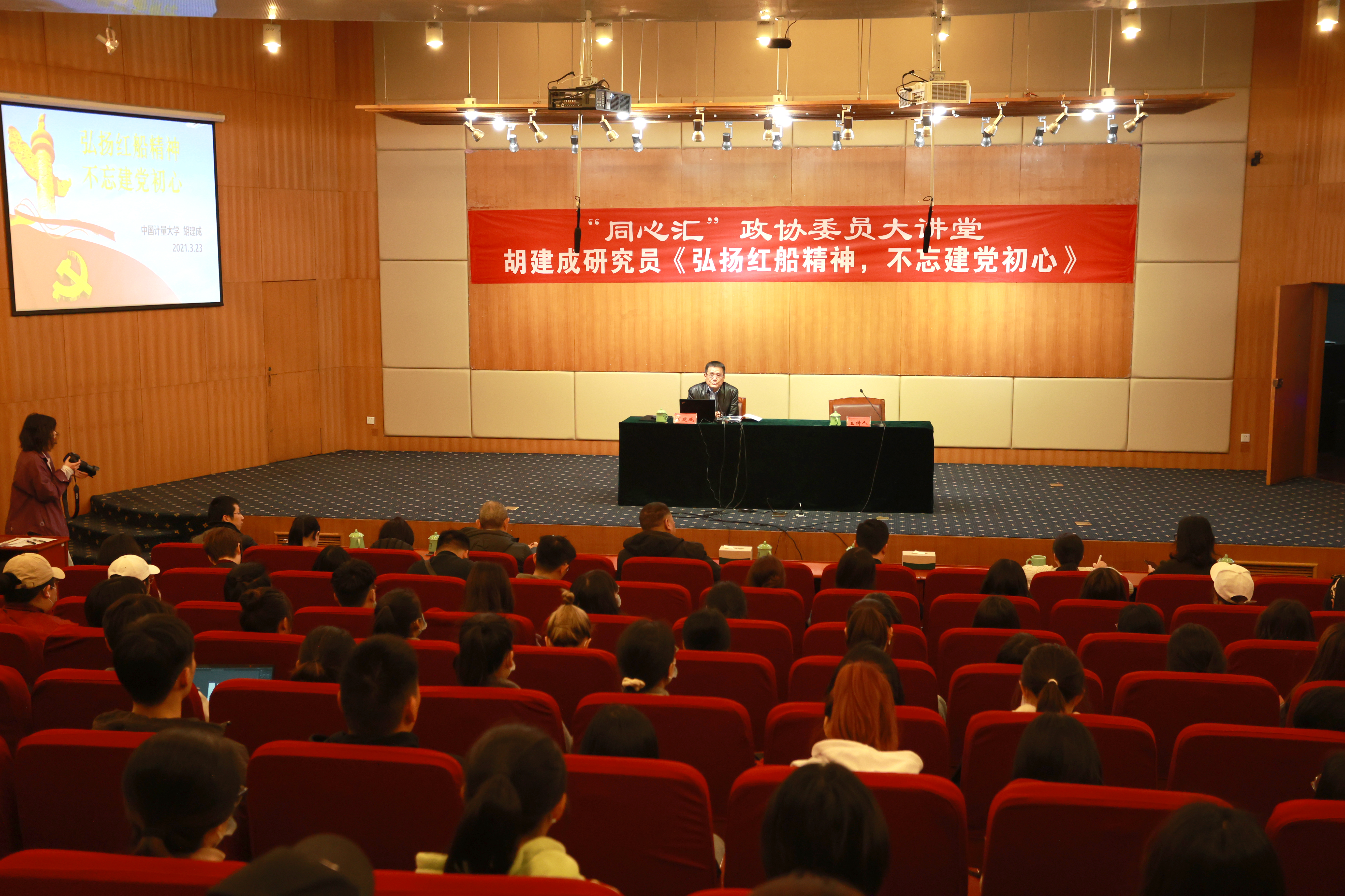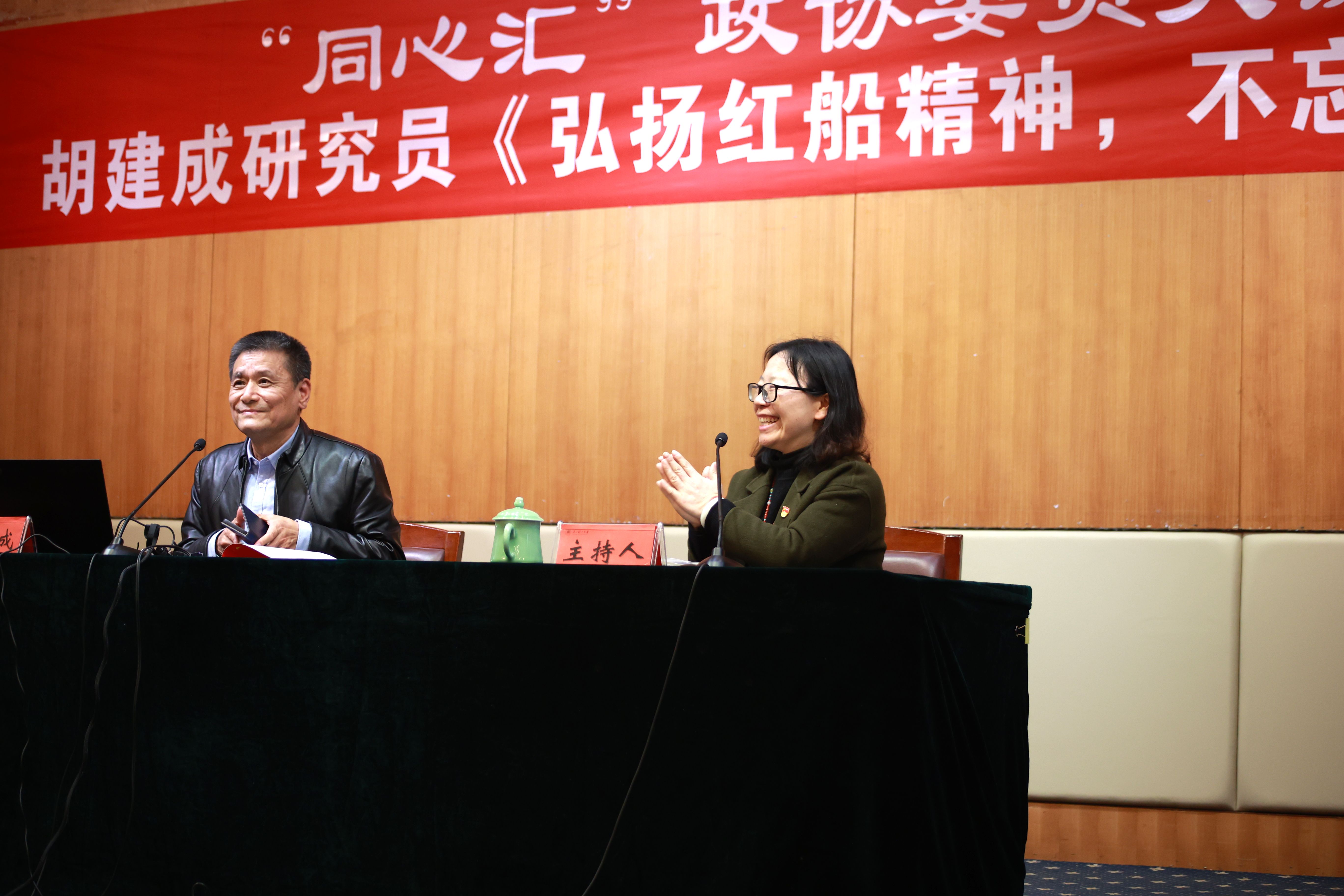 会议最后,胡建成研究员引用了毛主席所说:“青年朋友们,世界是你们的,也是我们的,但是归根结底是你们的。你们青年人朝气蓬勃,正在兴旺时期,好像早晨八九点钟的太阳。希望寄托在你们身上。”鼓励同学们发愤图强,为夺取新时代中国特色社会主义伟大胜利创造更好未来。并以自创的诗歌《红船起航》,将红船精神的内涵升华到高潮,在热烈的掌声中结束了生动的党史文化讲座。