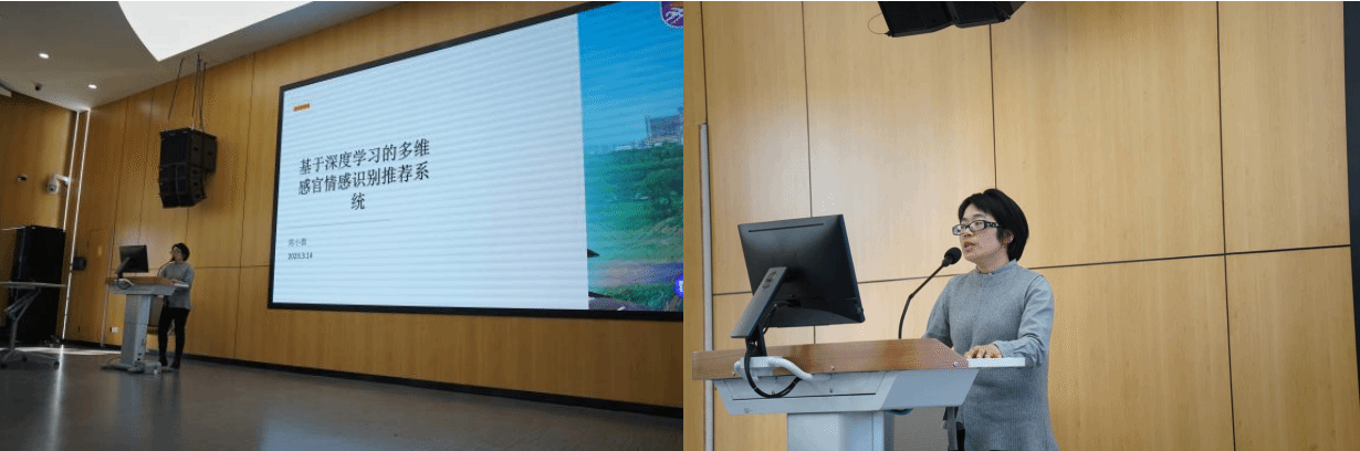 陈小微老师作为特邀嘉宾进行了题为《基于深度学习的多维感官情感识别推荐系统》横向课题项目的汇报,对她在人工智能、情感识别等研究领域的科研进展和成果做了学术报告,详细介绍了研究团队、研究框架、研究内容、相关理论和实践展开,拓展讲解了计算机人工智能方向的知识,为公司教师的科研申报工作打开了新思路。