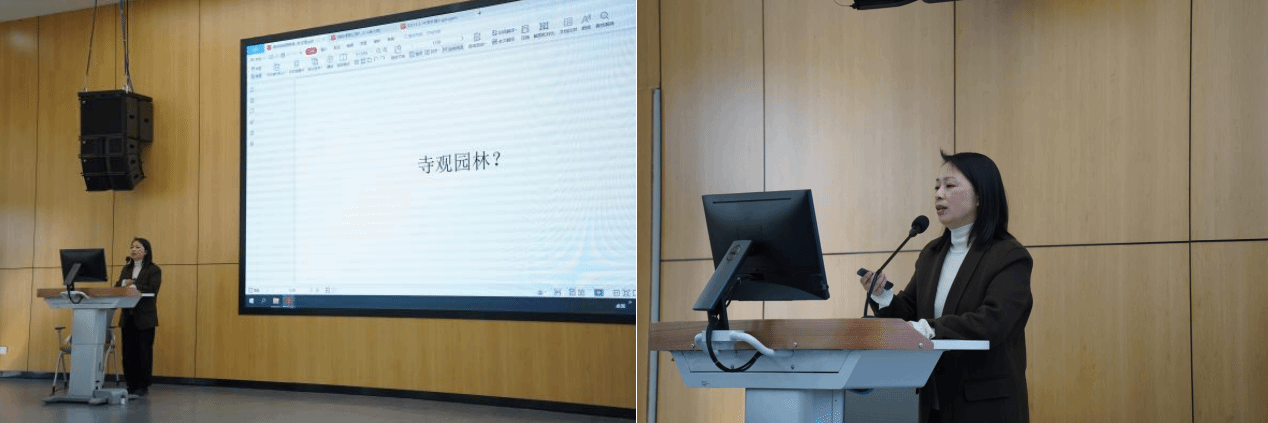 胡霜霜副教授分享了《杭州寺观园林演变及当代价值研究》的课题申报经验,向我们展示了该项目申报的详尽内容,从如何选题讲起,生动全面地讲解了申报书中的选题背景和选题意义、已有研究和评述、基本概念与问题、研究方法和计划、预期成果及去向与主要参考文献等各个方面的要点和难点。