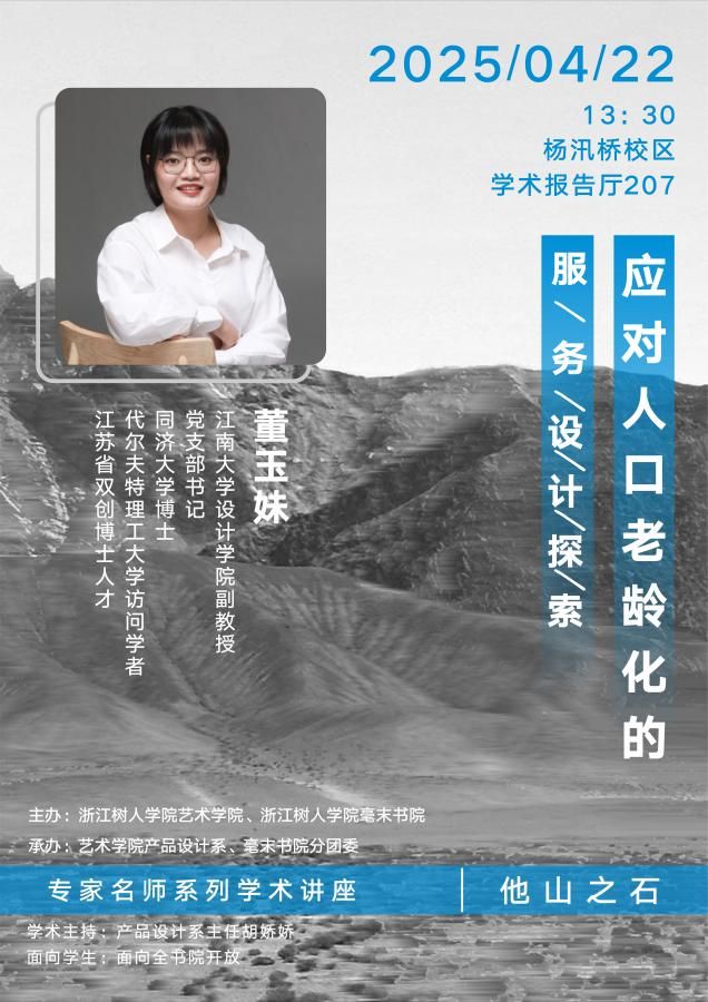 为响应国家积极应对人口老龄化战略,深化康养产品与服务设计的融合发展,4月22日,公司太阳集团tyc4633产品设计系和毫末书院协同开展导师进书院工作,特别邀请江南大学设计公司副教授董玉妹开展专题讲座,主题为“积极应对人口老龄化的服务设计创新”。