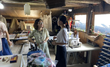 在与当地的绣娘沟通中,郑书记建议她们平时可以多尝试一些相对简单的纹样,在某些布包袋或者服装设计上注意留白,相应减少全幅刺绣的压力和精力,同时也体现以简为美的风格。