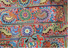 在她的家里她热情得向我们展示了这些年里积攒的大量苗绣作品,其中以叠绣和数纱绣最让观者叹为观止。从颜色看,这些作品的配色我认为更加具备审美,色彩构成均呈现低调奢华的感觉。吴秀英绣的作品图案不用样品,而在脑中随意构思,信手刺绣。