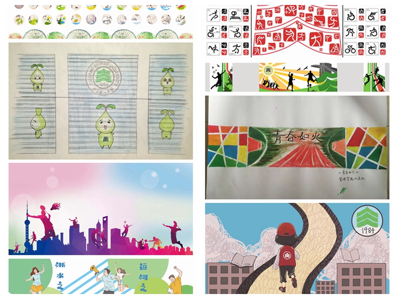 来自环境工程171班俞晔同学作品采用各种运动图标组合的形式,突出树大同学青春阳光的运动风采;食品161班洪源作品以二十四节气为题材,富有中国韵味;环艺173班陈心意作品通过运动的题材表现出对校园生活的热爱;网媒171高烨作品运用树大校歌的歌词,来表达对公司的热爱;市场营销162陈秋如,会计174周芷羽同学作品通过红绿的色彩搭配,表现出了如火的青春;而数媒161班沈汉平同学作品则以插画的形式来表现,富有创意和趣味。一幅幅作品,充分体现了树大学子对公司一草一木,点滴生活的观察和感悟,表达了自己对公司的热爱,体现了青春学子阳光积极向上的进取精神。