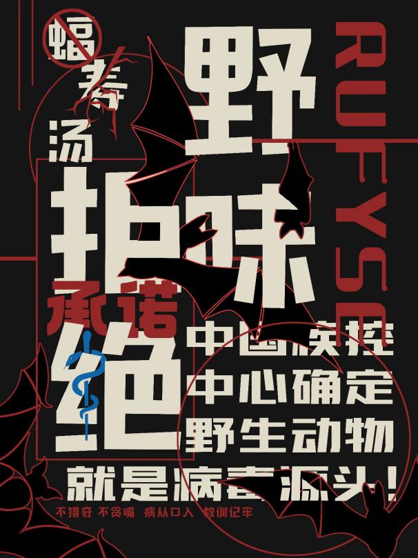 创作感想:珍爱生命,拒绝野味。新型冠状病毒来自野生动物,证据确凿!如果野味会说话,蝙蝠会告诉人类,我身上有超过100多种病毒,是真正的高致病病毒的“蓄水池”。穿山甲会告诉人类,我不是补药,吃了我,我身体里的病毒可能引发心肌炎,肺炎,肝炎等并发症。果子狸会告诉人类,你记不记得,曾经非典的那一年?拒绝野味,学会尊重自然,与自然和谐共处。拒绝野味,学会保护动物,也是保护人类自己。拒绝野味,摒弃虚荣无知,回归真实从容。