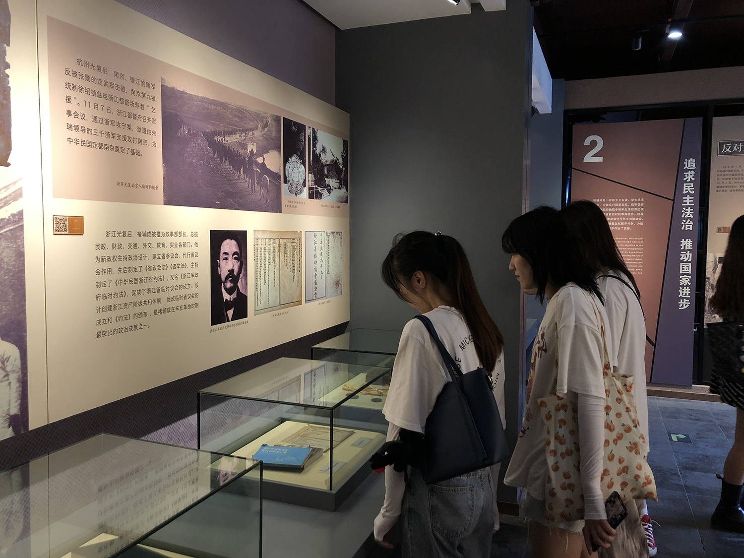 热情的讲解员给我们讲解了褚辅成先生的一些事迹。1932年韩国独立运动领导人金九因虹口公园爆炸案发,遭日寇通缉,在褚辅成帮助下,金九从上海来到嘉兴避居生活3年多时间,韩国临时政府要员住址就位于梅湾街。而褚辅成史料陈列室和金九避难处的落成开放,成为中韩两国人民珍贵友谊的历史见证。