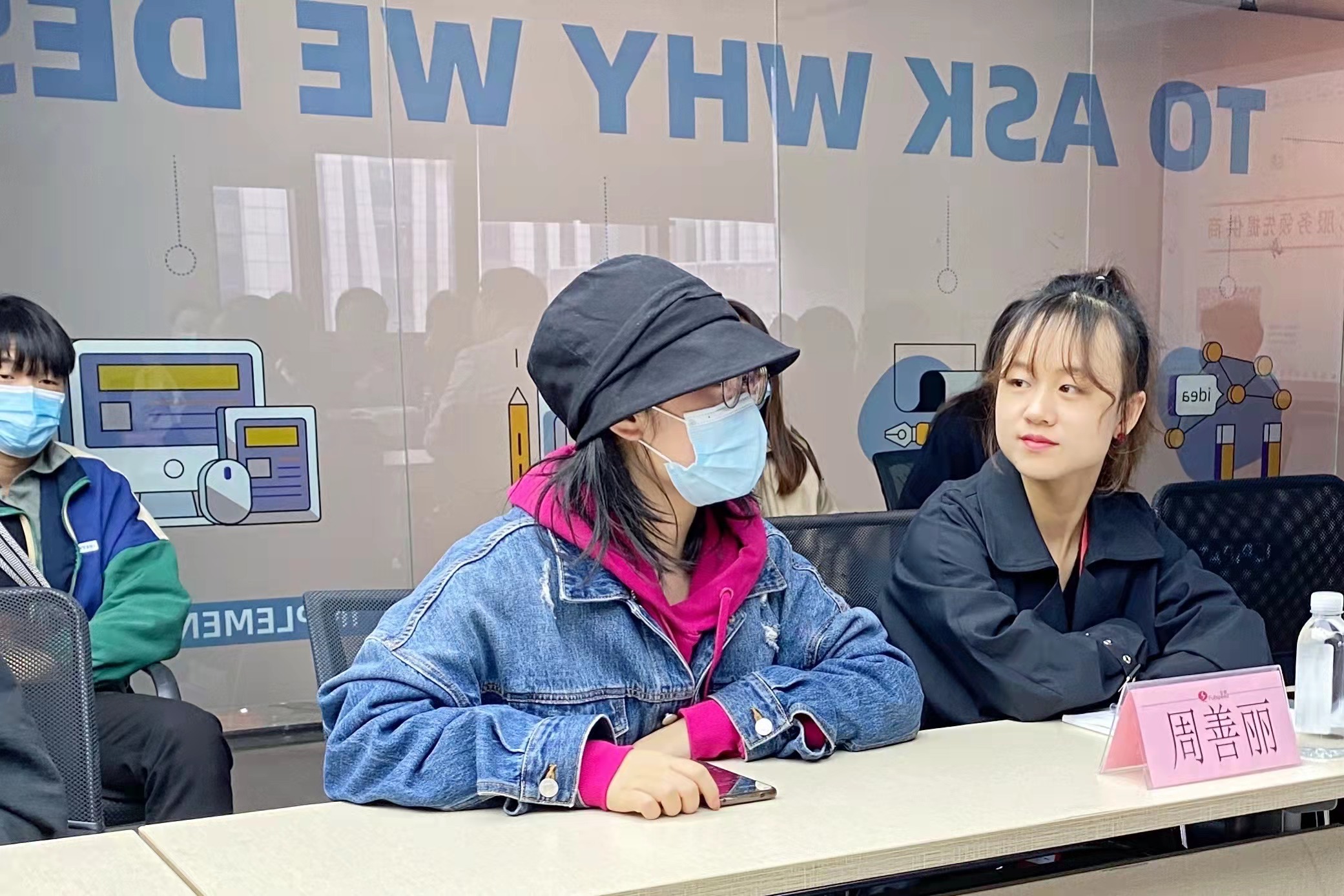 授牌仪式后,已入职一年的2021届视觉传达优秀毕业生给学弟学妹们进行了工作经验分享和建议。