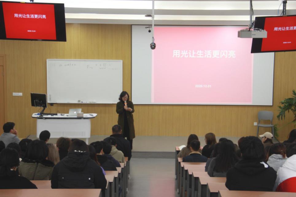 本次讲座,陈连飞用质朴的词句从如何学习、如何管理团队、如何沟通等方面作了深入浅出的阐述。他希望同学们结合自身专业来提升学习力和影响力,做强,做好行业领域的相应工作。图文并茂的案例讲解,让同学们对光环境设计这个全新行业领域有了全方位的认知,对自身的学习方向和就业目标有了新的思考。