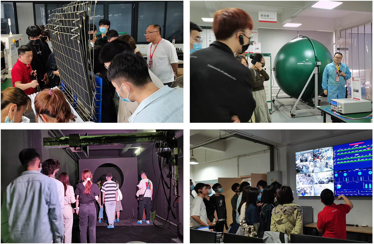▲师生在公司技术人员带领下逐个参观:生产智造中心、研发验证中心、产品服务中心和企业运营中心